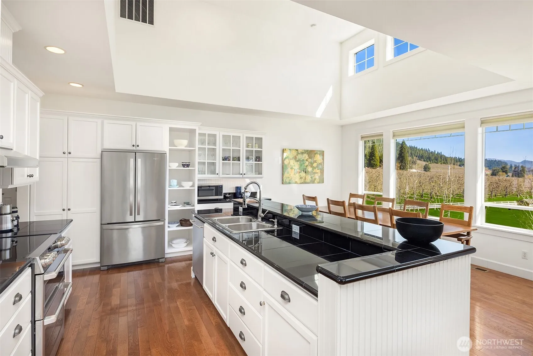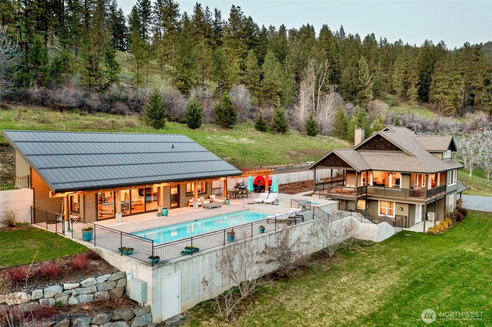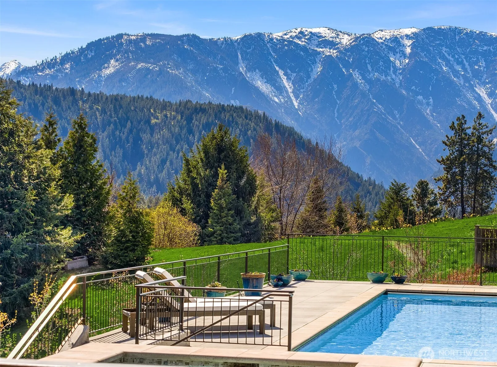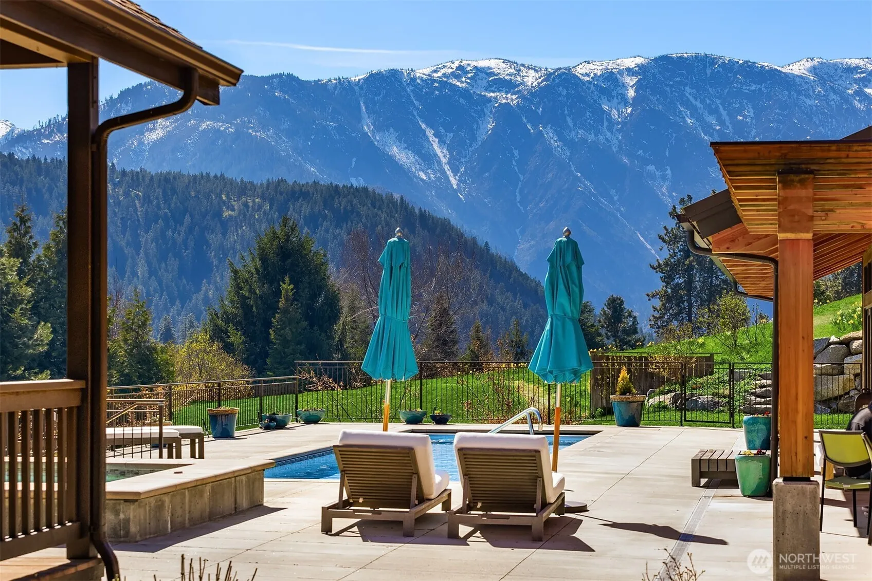 Sitting on 4.57 acres, this NW modern home has a spectacular separate ADU, including large master, marble tiled bath, & cherry floors/cabinets, perfect for multigenerational living, space for your friends, or a Tier 1 rental. Enjoy a truly spectacular view of the Enchantments from each building & the 40 x 12 pool & custom hot tub. The pool house has a 3/4 bath, gym, wet bar, and counter space to prep pizzas for the Italian wood-fired pizza oven. A studio building with ¾ bath allows private space for music, art or woodworking. This home has a special microclimate, protected from fog & wind, with sunny exposure. Additional features ~ irrigation rights, 2 large 2 car garages w.shop space, private office, & 2000 bottle wine cellar.