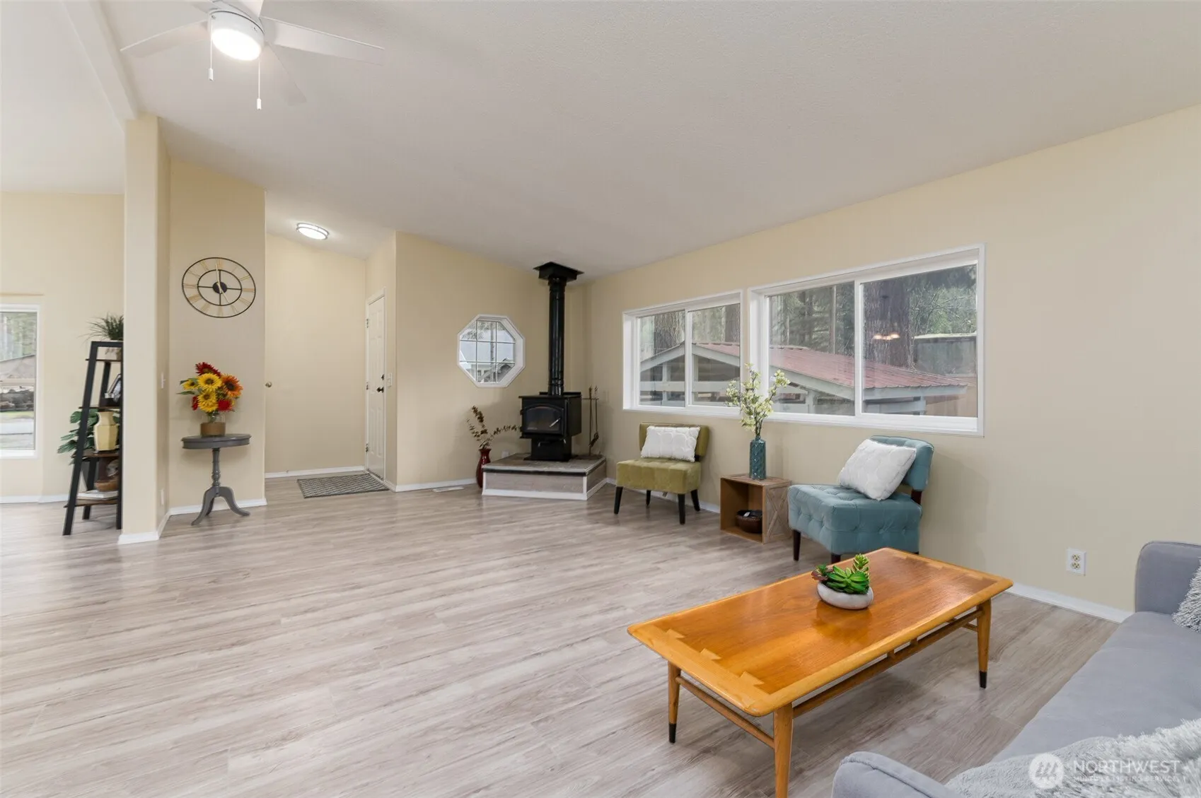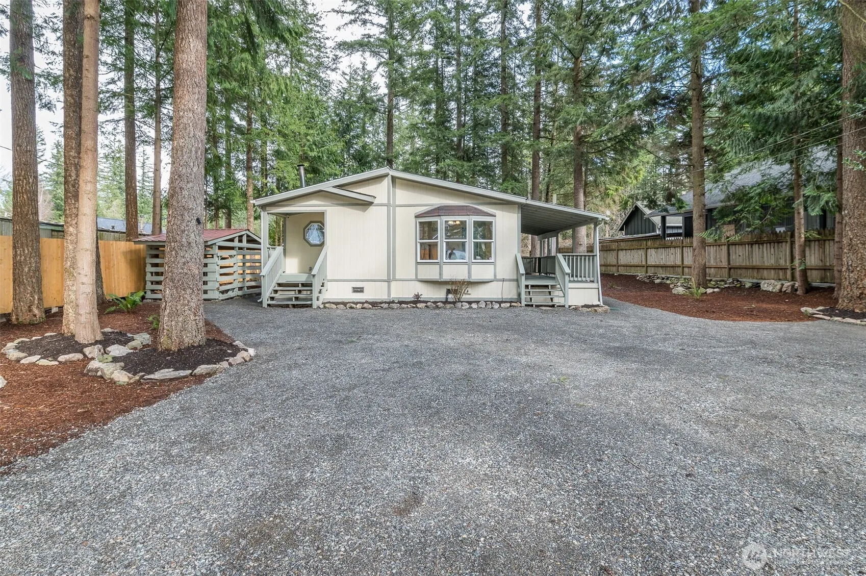 Beautifully renovated 1992 manufactured home in a peaceful community at an affordable price! This charming 2-bedroom, 2-bathroom home includes an office, fresh interior and exterior paint, a new roof, and a brand-new kitchen with all appliances plus a washer and dryer. The bright, open floor plan features new vinyl plank flooring throughout the living area & bedrooms and a cozy woodstove for chilly winter nights. Enjoy the large covered deck overlooking a beautifully landscaped, fenced yard offering plenty of privacy. With ample parking, a woodshed, and a utility shed for extra storage, this move-in-ready gem won’t last long—schedule your showing today!