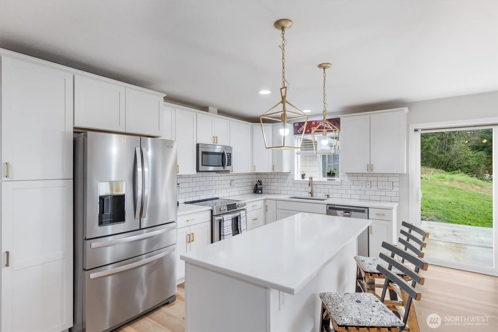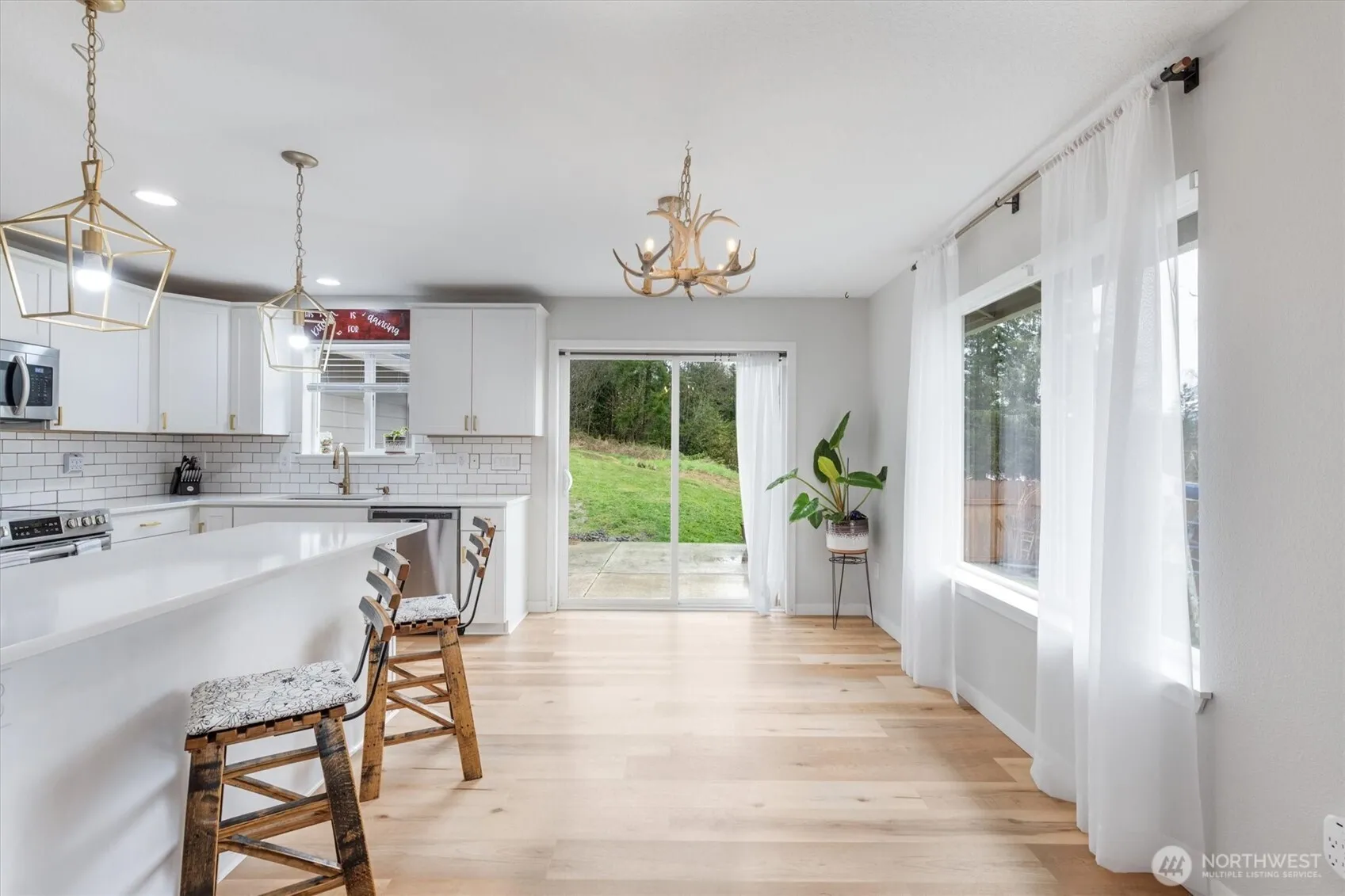 Nestled on just under 2 acres, this beautiful 4-bed, 2-bath home blends comfort, functionality, and style. The open-concept layout is anchored by a stunning kitchen with sleek quartz countertops, gold hardware, and seamless flow into the main living area. The primary suite boasts a walk-in closet and private bath, while a ductless heat pump ensures year-round efficiency. Step outside to a large back patio offering a perfect retreat for outdoor gatherings or relaxing. Additional features include 12x26x12 RV cover, two 12×24 powered sheds—one fully finished for a studio, office, or workshop—and a 16×16 enclosed dog pen. A 2-car attached garage & space for a future shop add even more flexibility. Don’t miss the chance to make this home yours!