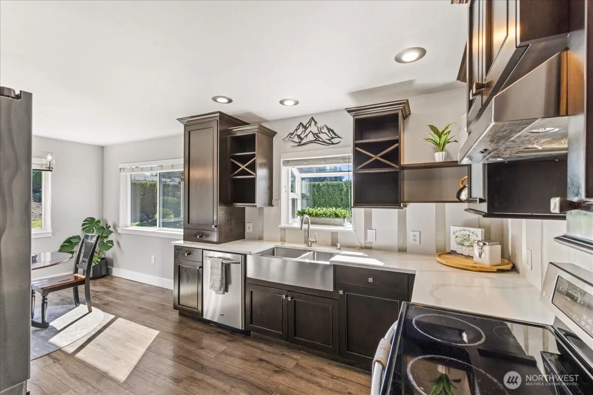 Welcome home to this beautifully updated 2 bed/1 bath rambler in the heart of Enumclaw! This meticulously maintained home boasts wide hallways and an abundance of natural light. All new interior paint, updated millwork & flooring throughout. The stunning kitchen offers a farmhouse sink, custom cabinetry, and breathtaking views of Mt. Peak. 2 spacious beds + an expansive bath w/ double sinks, tile flooring & walk-in shower. Enjoy gorgeous sunrises on your private patio. Wired for generator. Tankless hot water heater. Dedicated carport parking/storage unit. HOA maintains the exterior & common area, offering low maintenance stress-free living. Minutes to Crystal Mountain & Enumclaw amenities. No rental cap. Pre-Inspected for your convenience!
