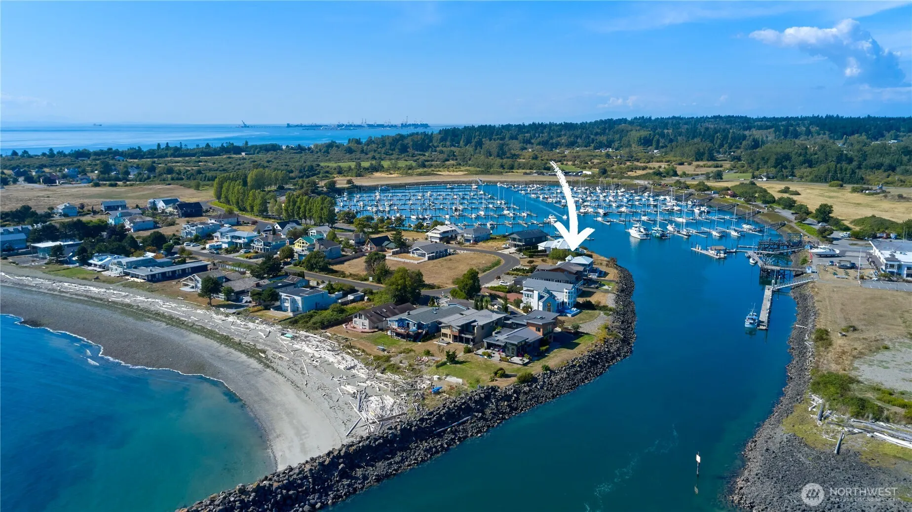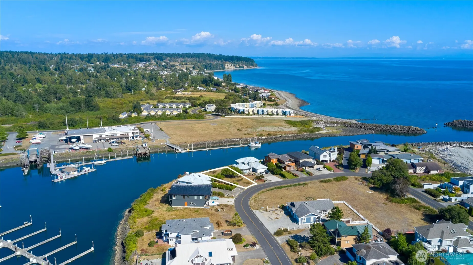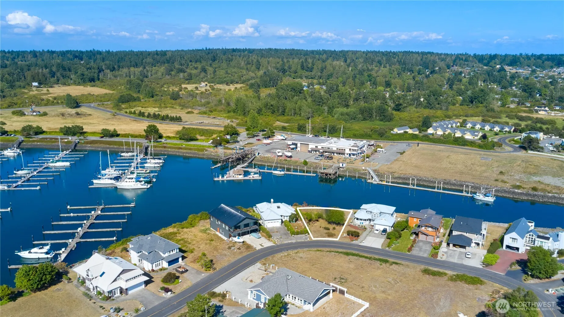 Water-front property in the highly coveted Point Roberts Marina Estates subdivision surrounded by upper scale homes. Enjoy ocean, canal and marina views from this large 1/4 acre building lot. The parcel is already cleared and ideal for your future dream home. No septic required as sewer hookup is ready! Beach rights on title and a very short walk to the private beach access.