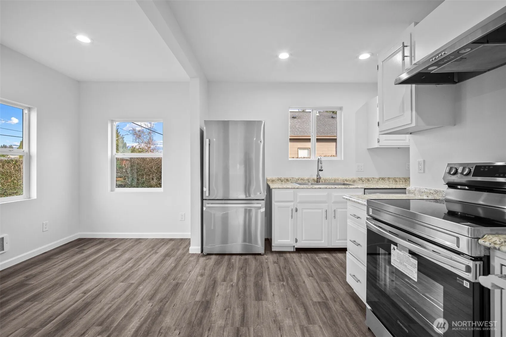 This fantastic home features 4 bedrooms, 2 bathrooms and is situated on a spacious lot with both street and alley access, plus RV parking in the back. The functional kitchen boasts brand new stainless steel appliances, extra cabinet space for storage , and both a dining area and breakfast bar. The open-concept living room is bright and airy, offering seamless access to the bedrooms and bathrooms. Conveniently located near I-5, downtown, grocery stores and more, This home is zoned for duplex development, buyer to verify details. There’s no HOA, and its located outside the flood zone. This home is a must-see!