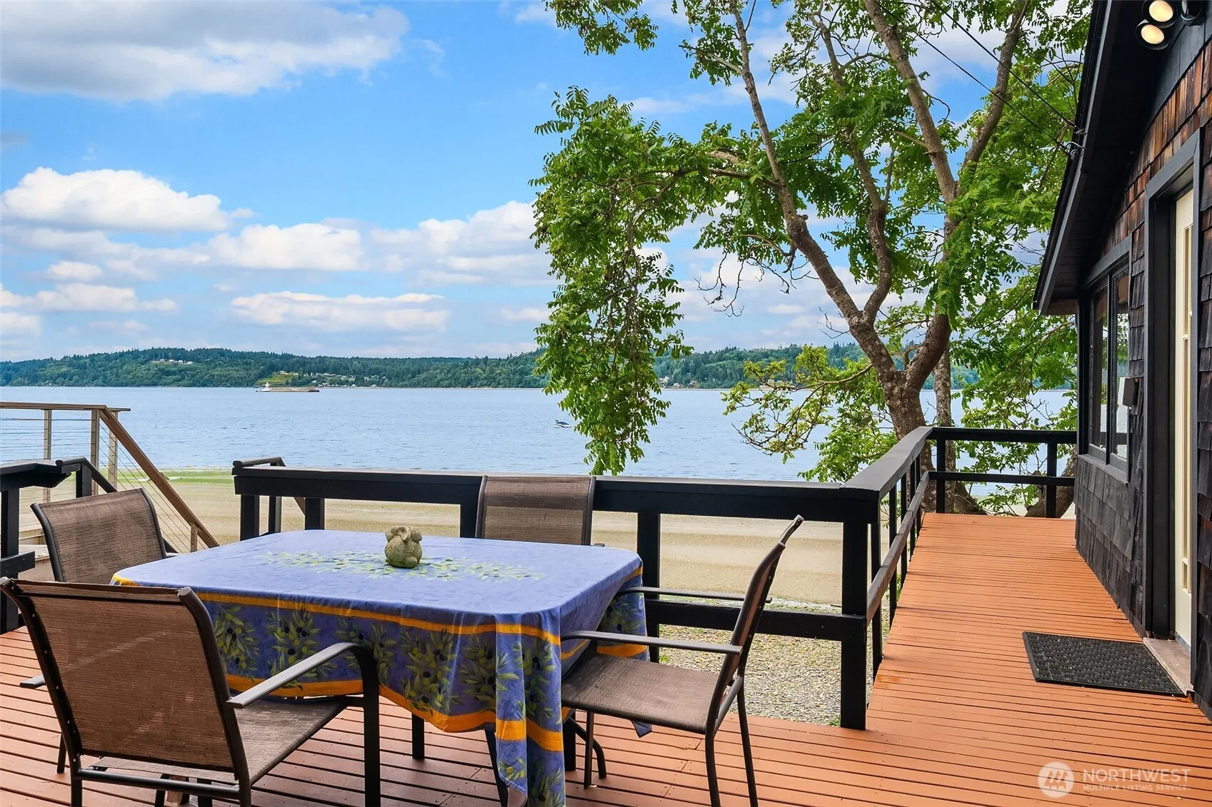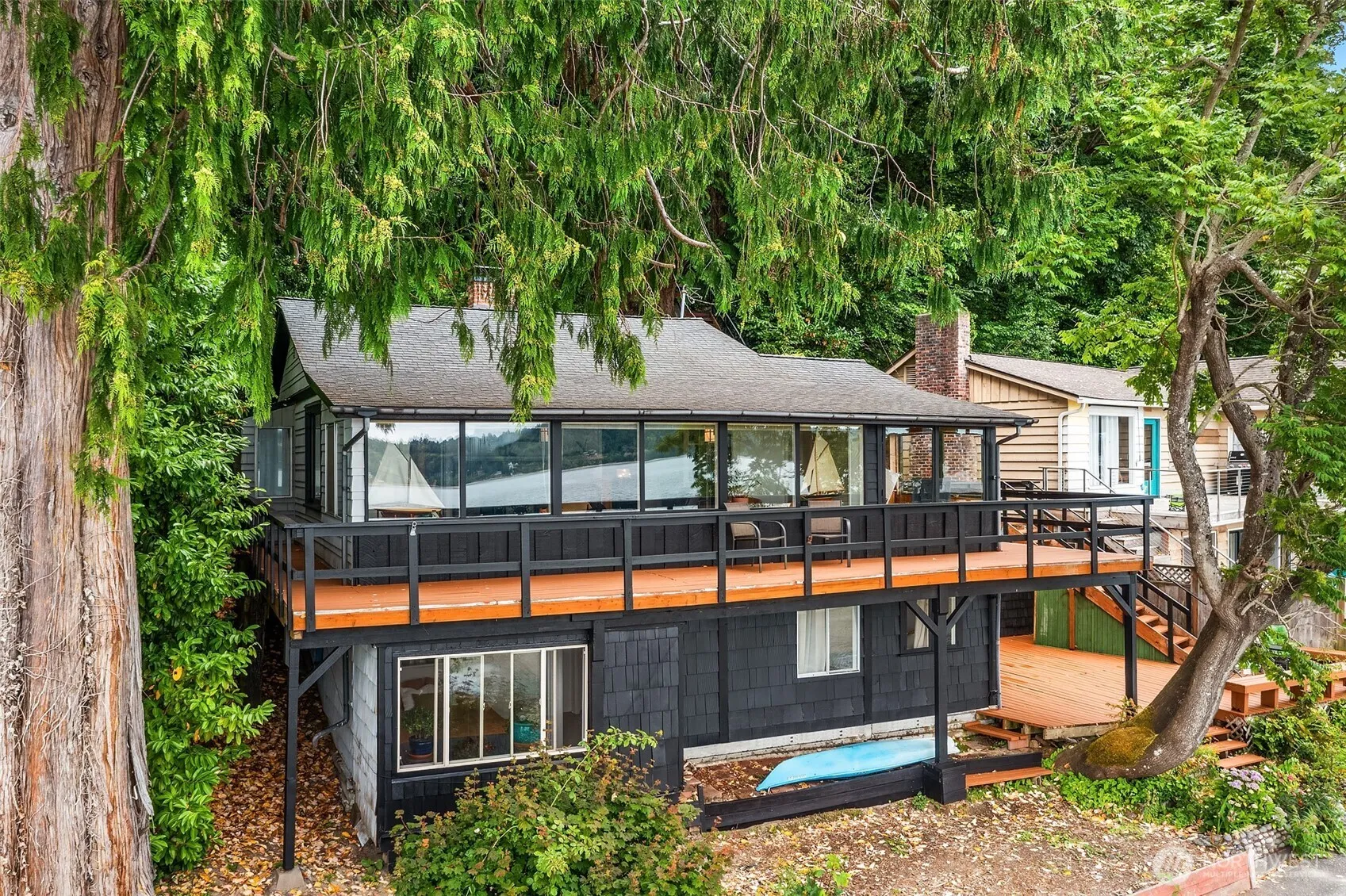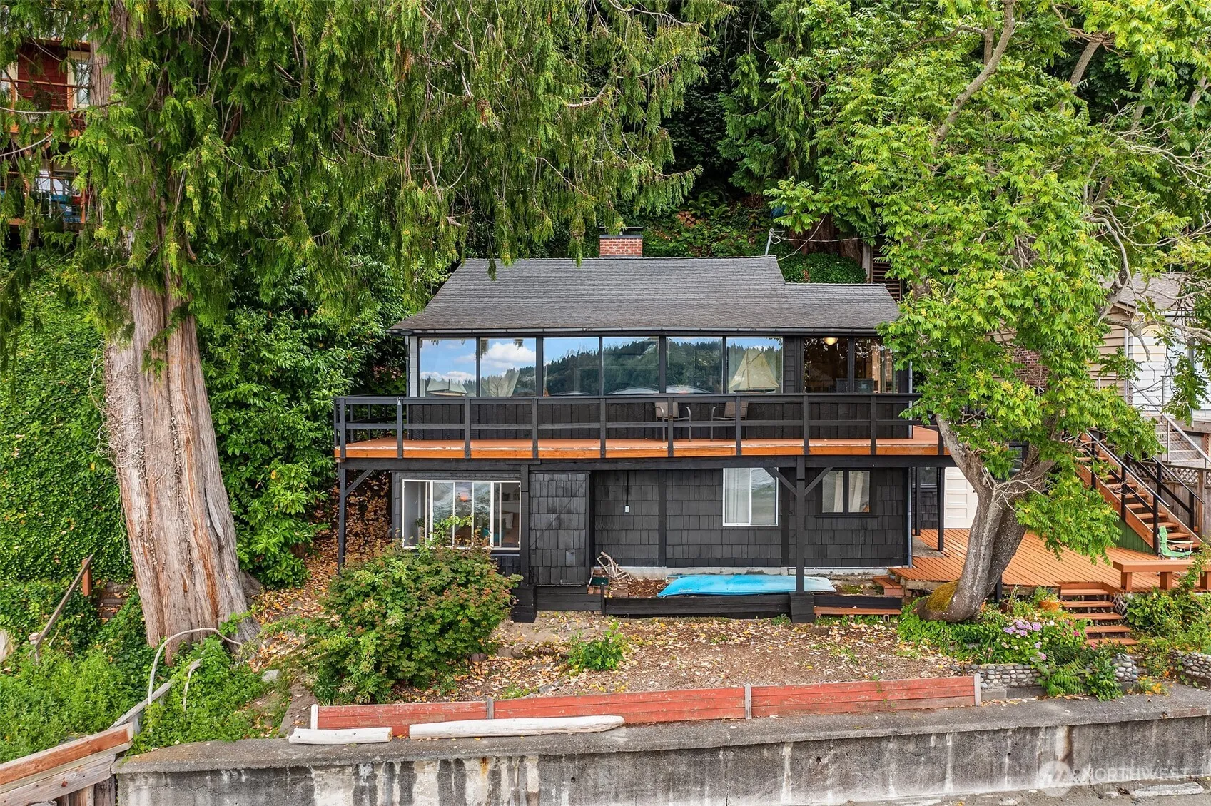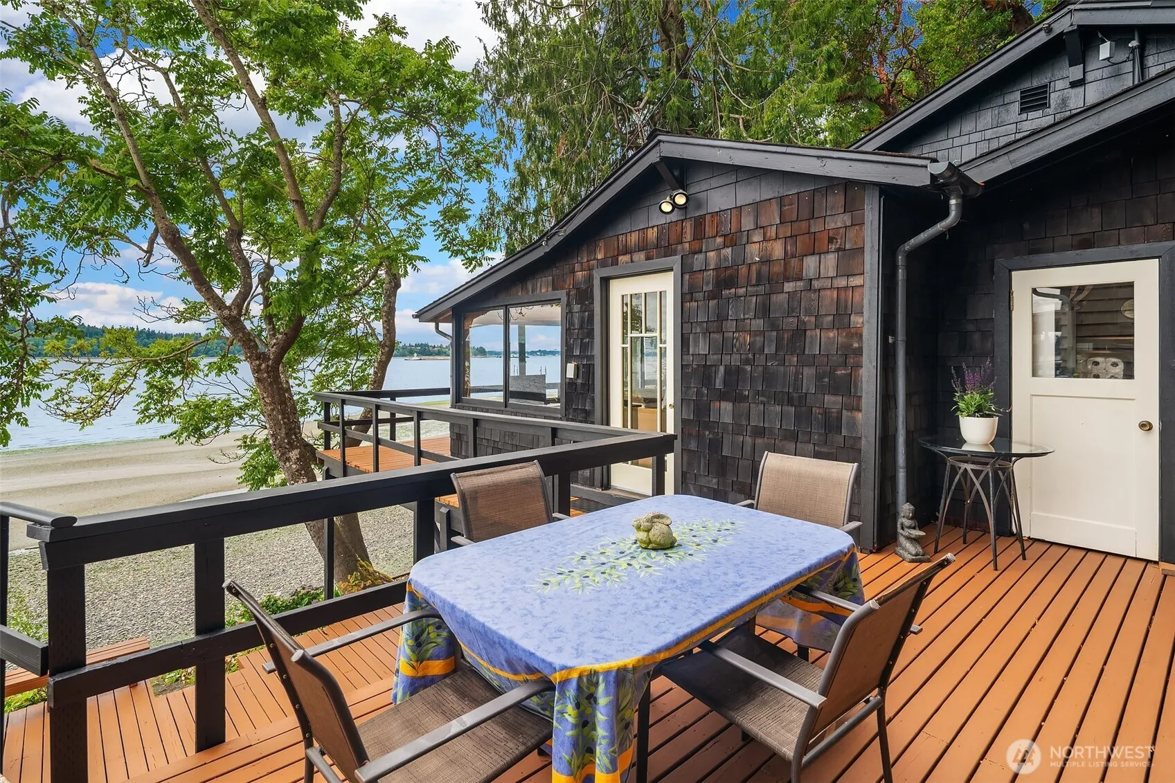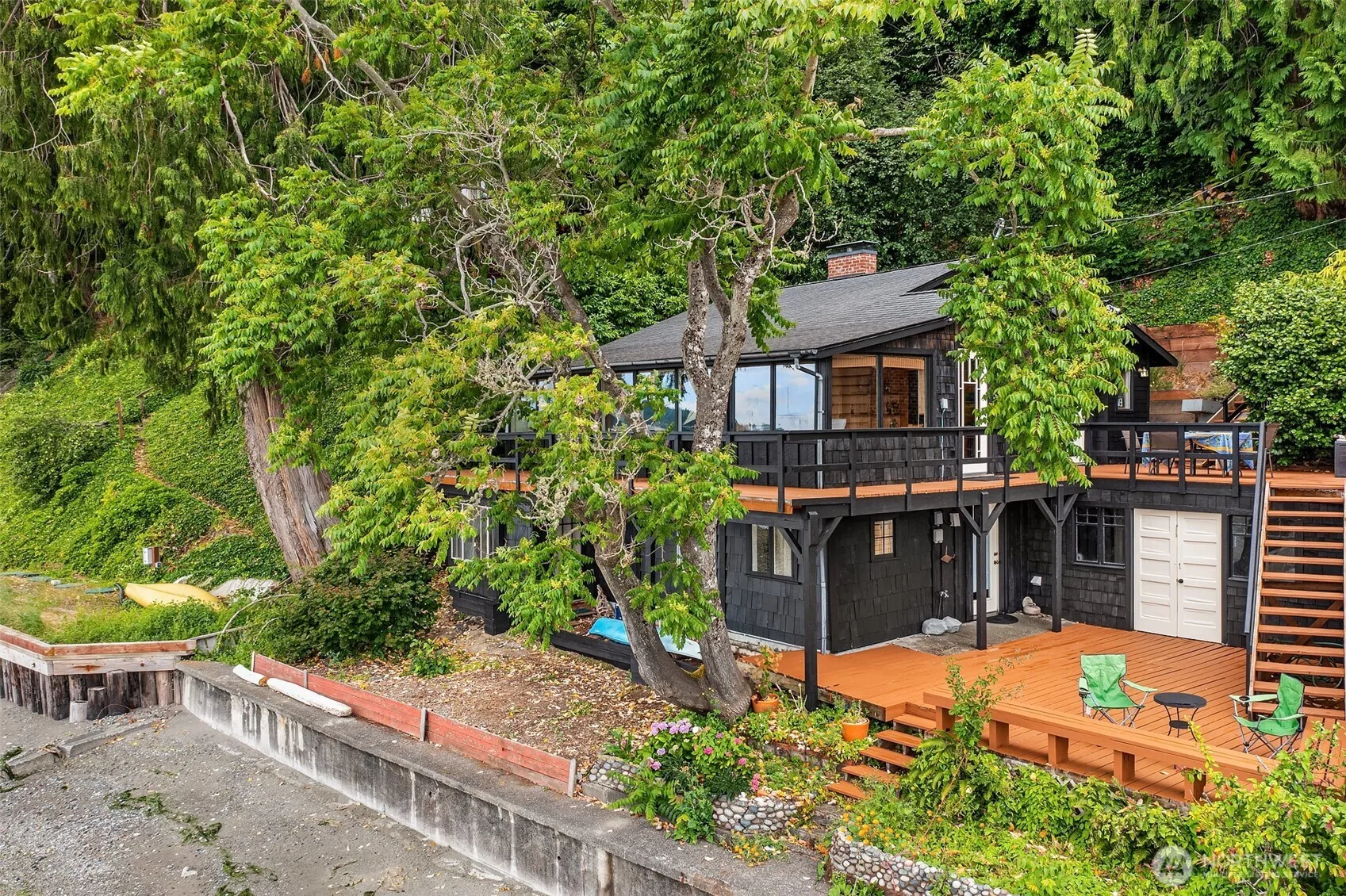 Let the sunset over Colvos Passage greet you from a cozy great room anchored by a wood-burning fireplace. This iconic 1927 waterfront island house is a restorative retreat. A multi-story deck overlooks 70’ of mid-bank waterfront. Launch your kayak or paddle board just steps from your deck. Primary en-suite bedroom on the main level, two guest rooms and bath below. Tucked away on Vashon’s West Side in a quiet waterfront neighborhood yet just a six minute drive to the North End ferry or Vashon town. The sweeping view renews and inspires – proof of the quiet power of water. Return home through a winding private forest drive and exhale.