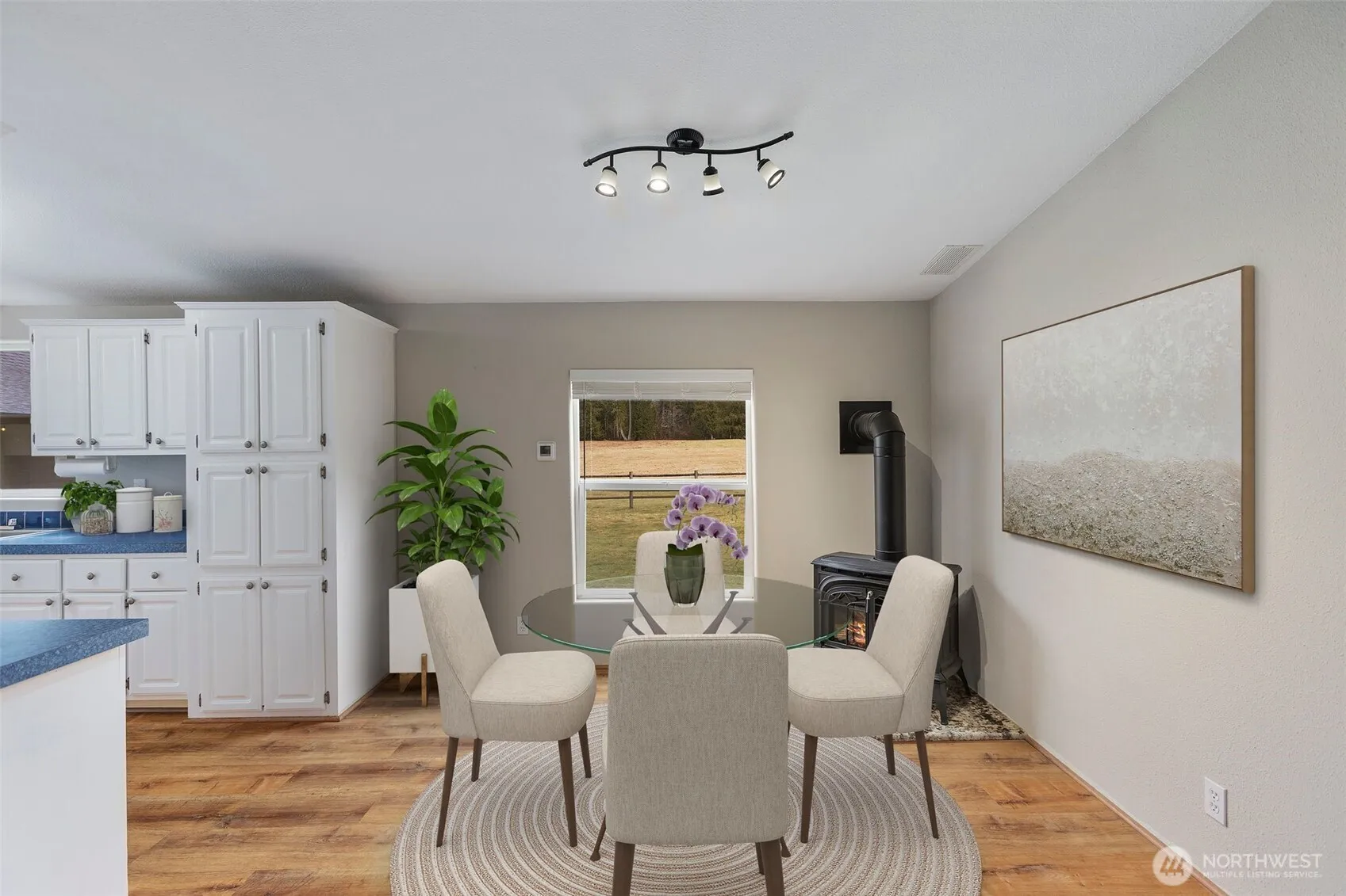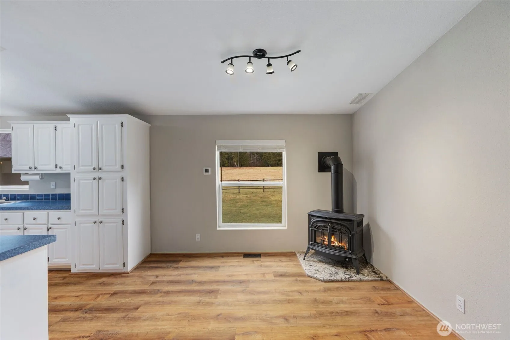 Beautifully updated single level home on 6.35 private acres w/ a Custom Dream Shop & 3 stall Barn. 3 bedrooms, 2 baths, den, vaulted ceilings, propane fireplace, kitchen w/ eating nook & all new SS appliances. Primary suite w/ walk-in-closet & full bath. Upgrades include: New roof, carpet, laminate flooring, bath remodel, SS appliances & freshly painted interior. New gutters & facia boards added 4 years ago. A 28×44 fully insulated Shop w/ built-in air compressor, pellet stove, storage, 3/4 bath, a 616 Sq. Ft. unfinished loft area (possible Apt./MIL/Multigenerational) + 2 -12 FT wide covered carports. The fenced pasture provides room for Horses, Cows etc.. RV parking & room for all your toys. Air Compressor, Generator & Starlink included!