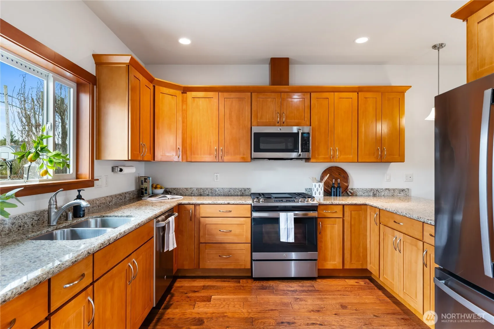 Old Town Anacortes one level living plus fabulous 352 sqft ADU. Home boasts, Solar Panels, Heat Pump, Standby Generator, direct vent gas fireplace. Primary suite complete with, walk in closet, 3/4 bath, double sinks. Home features: 3 bedrooms, 2 baths, quality washer & dryer, two car garage, nicely landscaped yard, cherry kitchen with granite counter tops, stainless appliances and door to private patio area for relaxing or BBQing. ADU is a separate building that comes complete with kitchen, refrigerator, water heater, bathroom with shower. Downtown is close by to enjoy the restaurants or go shopping. Guemes Island Store another close desination for great outdoor entertainment & food while you enjoy a view of Anacortes, 8 minute ferry ride.