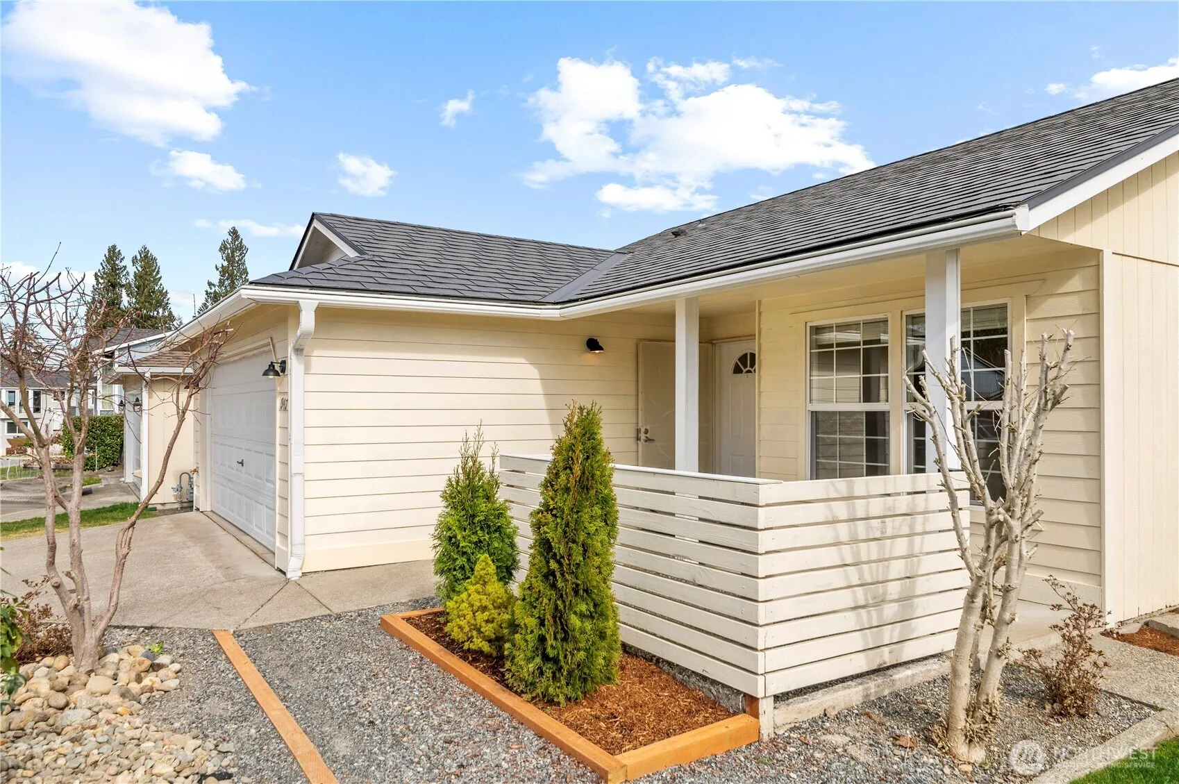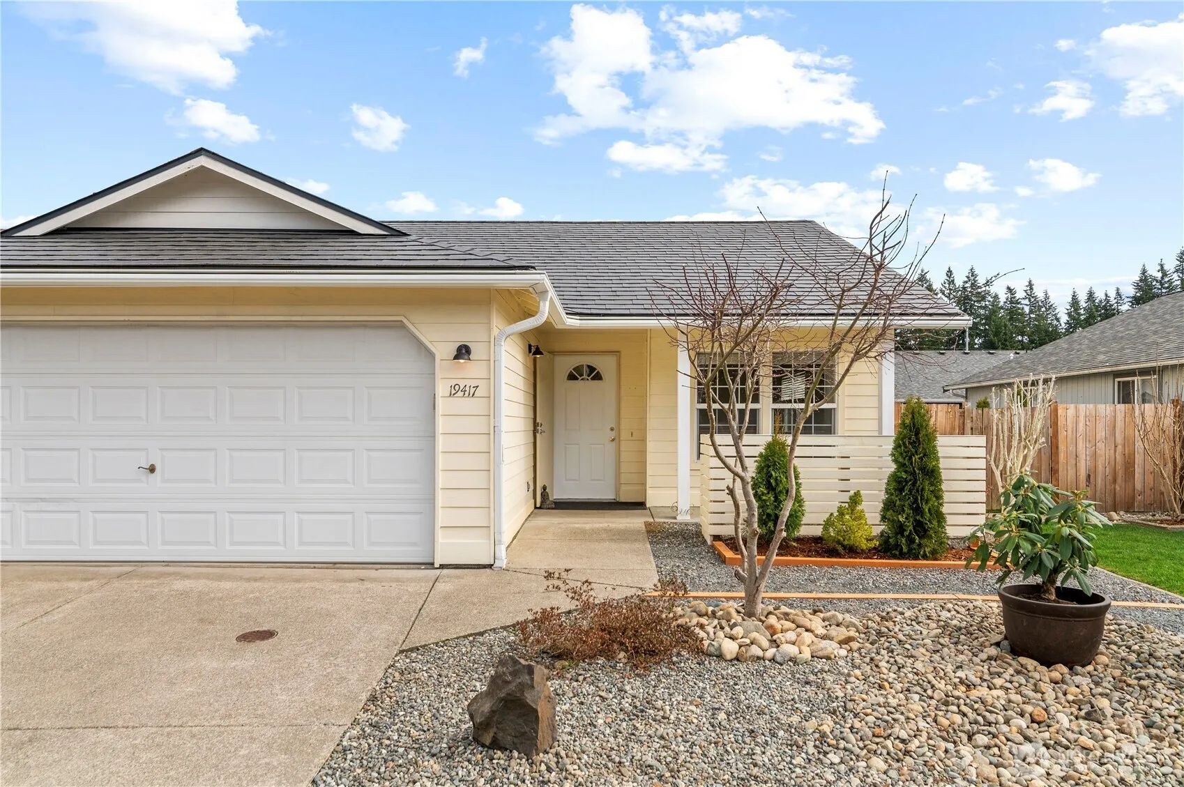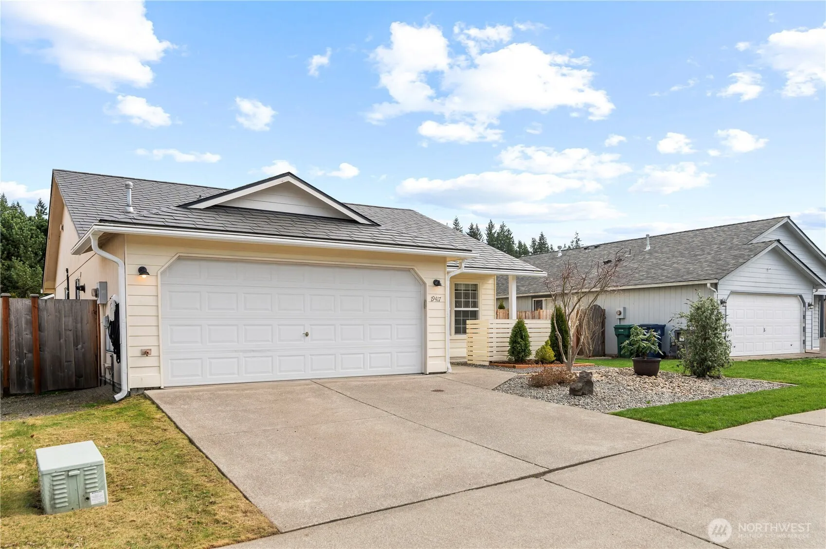 Experience the warmth & comfort of this beautifully maintained home. A charming covered front porch invites you inside, where a bright & open floor plan welcomes you w/ vaulted ceilings & abundant natural light. Thoughtfully designed kitchen offers ample space for dining, seamlessly connecting to the spacious living room w/ a large picture window.The primary suite boasts a walk-in closet & private full bath, while 2 additional bedrooms share the convenience of a 2nd full bath. Dedicated laundry room & attached 2-car garage add to the home’s functionality.Step outside through the sliding doors to a fully fenced backyard, perfect for relaxation or entertaining, complete w/ patio. Ideally located, this home offers both convenience & comfort.