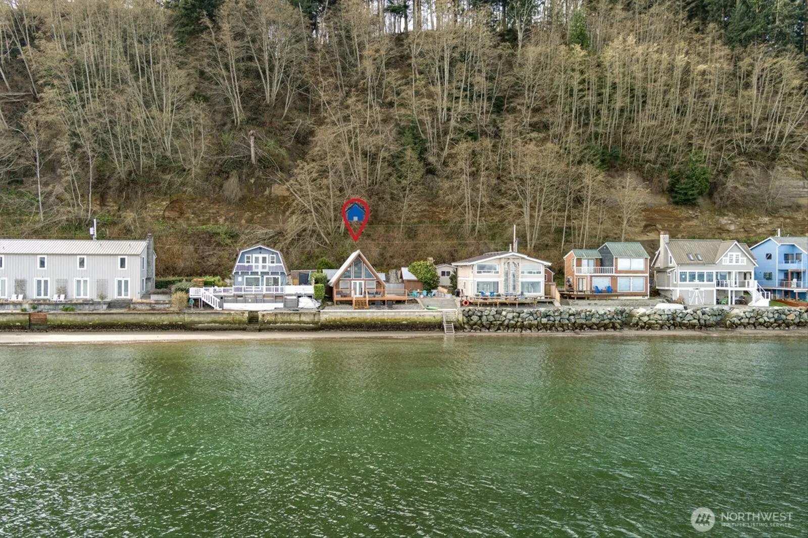 Wake up to breathtaking views & the serene beauty of the mountains from your beachfront sanctuary!This charming 1-bedroom + loft retreat offers front-row seats to daily wildlife. Watch majestic eagles soar, playful seals onshore & whales swim by just beyond your doorstep. Step onto your deck, perfect for morning coffee or sunset cocktails as the ocean breeze drifts by. A large courtyard invites you to entertain or stargaze by the fire pit. Inside, vaulted ceilings & expansive windows bring the beauty of the PNW indoors, filling the space with natural light & coastal charm.If you’re searching for a serene escape,the best crabbing beach & your own beachfront paradise, this Island gem is calling your name! Bulkhead redone in 2023!