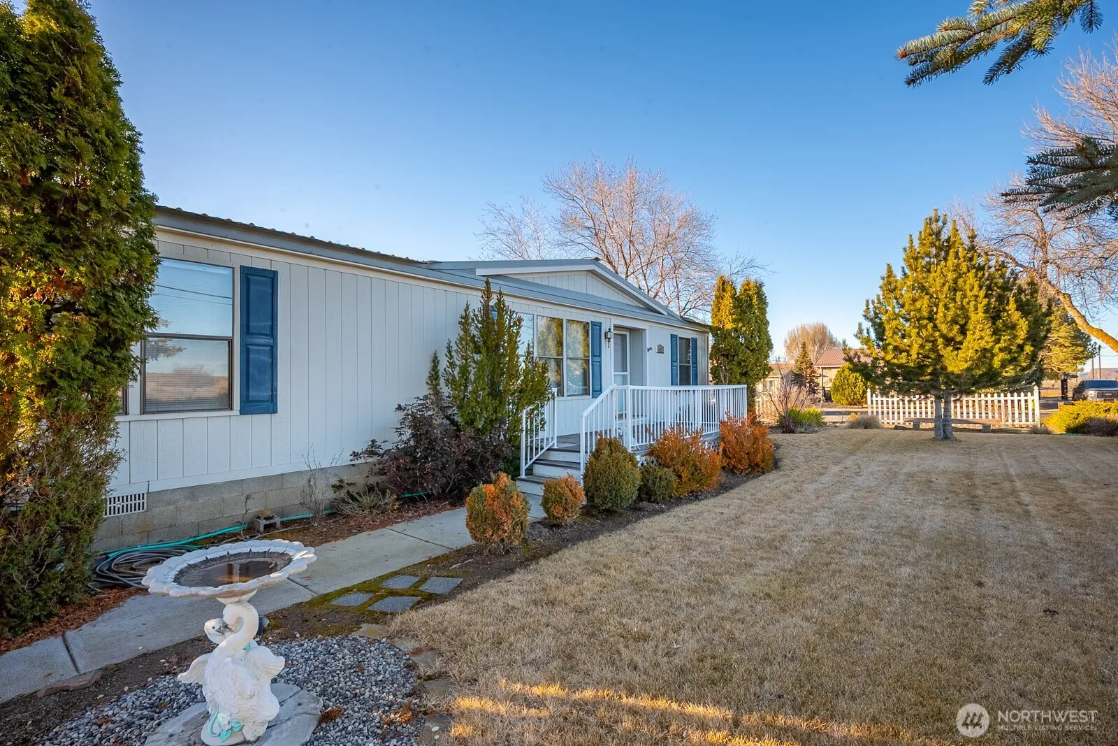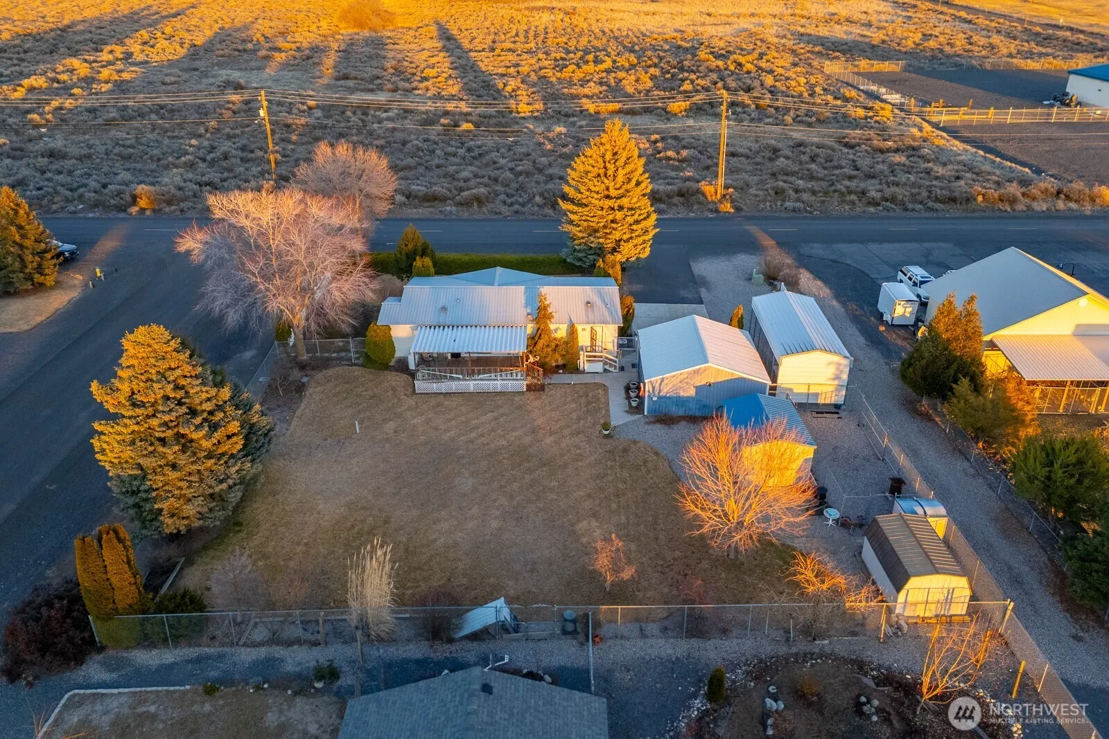 Exceptionally well maintained 2 bedroom + office, 2 bath home with detached double car garage, RV carport, and workshop/studio in Coulee City. This home sits on a large .44 acre corner lot with mature landscaping, sprinklers, paved driveway, fenced dog run, metal roof, covered back porch with sunshade and a large expanse of lawn for outdoor entertainment. Interior has vaulted ceiling, large windows to let the natural light in, fireplace, new flooring in the bathroom and kitchen area, new plumbing 2021. This beautiful property sits 1/2 mile away from Coulee City Park and Banks Lake Boat Launch.