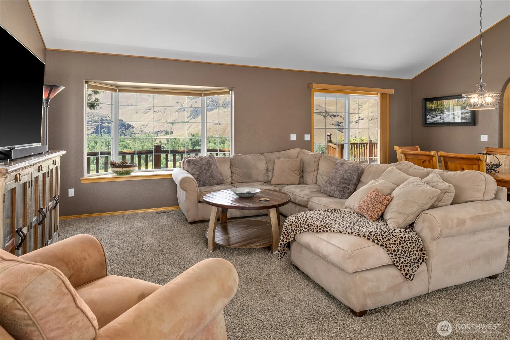 Stunning lodge-style home w/breathtaking views of the Yakima River Canyon! Minutes to Ellensburg w/easy freewy access, this 5.79-acre parcel(KRD irrigation) offers the best of the canyon lifestyle. Soaring peaked rooflines & wall of windows showcase the view & the great rm features a floor-to-ceiling rock fireplace & open kitchen. Main-flr primary suite w/spa-like bath-tile shower & jetted tub + a private deck. Upstairs: loft, 2 bedrms & full bth. Wood flrs, AC, new Trex deck, 2-car garage & carport. Bonus: 28 X 40 Shop & a 1-bed ADU w/full kitchen, ¾ bath, patio & river view—ideal for guests or short-term rental AND 1914 SF shop & carport. Fruit trees, 2 addit. outbuildings, metal roof & 3-rail fencing completes this one-of-a-kind retreat.