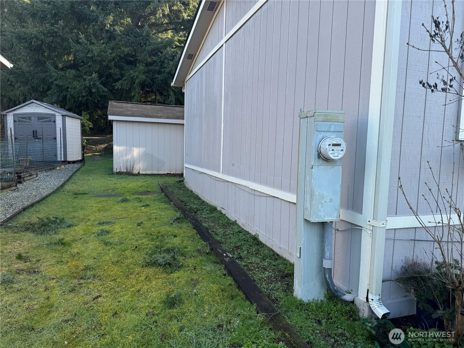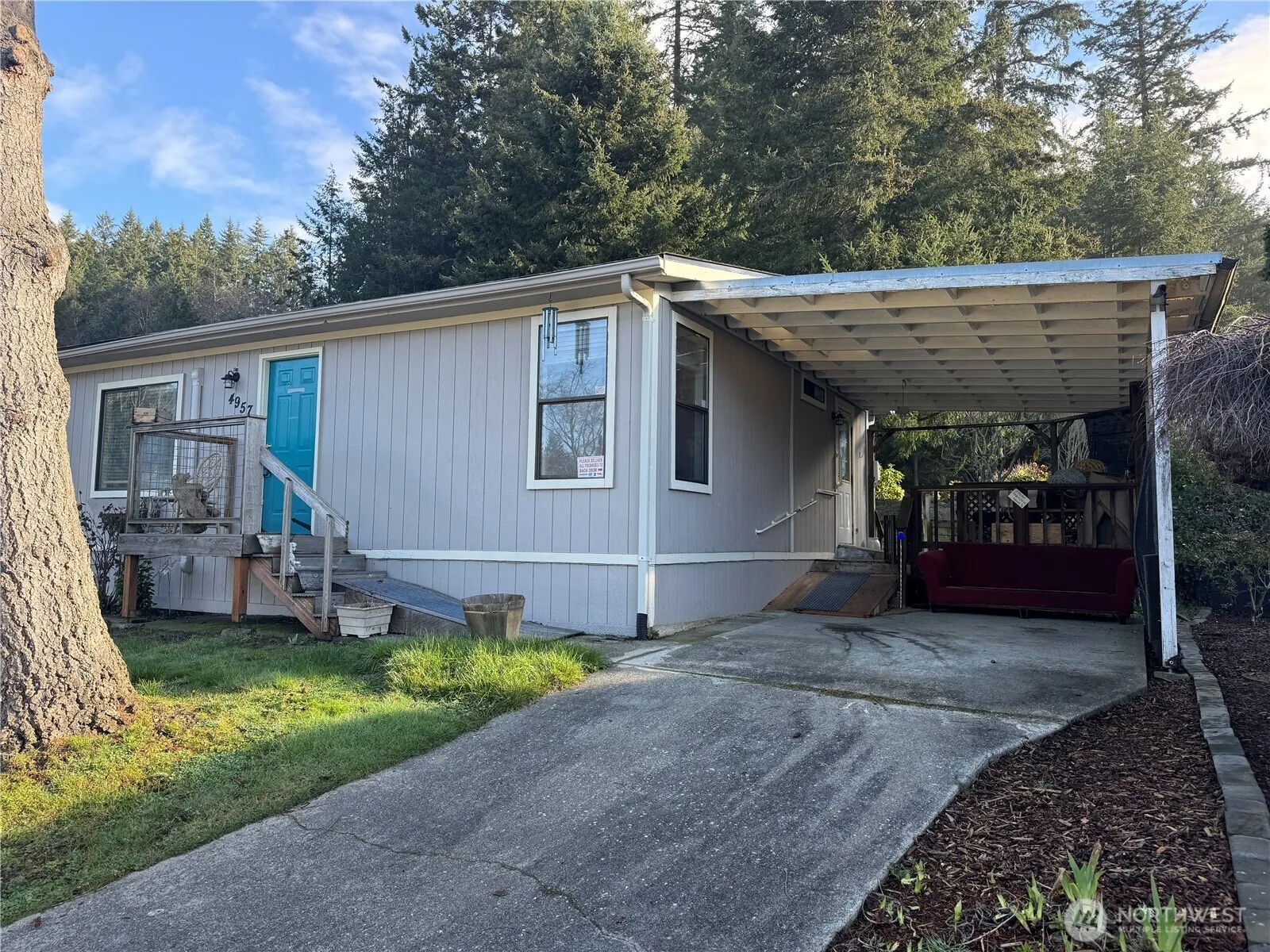 Light rehab at a bargain price. This Wheel Estates 55+ community home is being sold as-is. A quick update, primarily to just the flooring will have this home ready to live in. Newer roof and mini split installed. Owner unable to finish updates and needs to sell. Great layout with its simple floor plan makes finishing this project a breeze. Covered deck at the back of the carport leads to a private yard with storage shed in a highly desired and super clean community. $705/mo dues include water, septic, trash & yard waste.