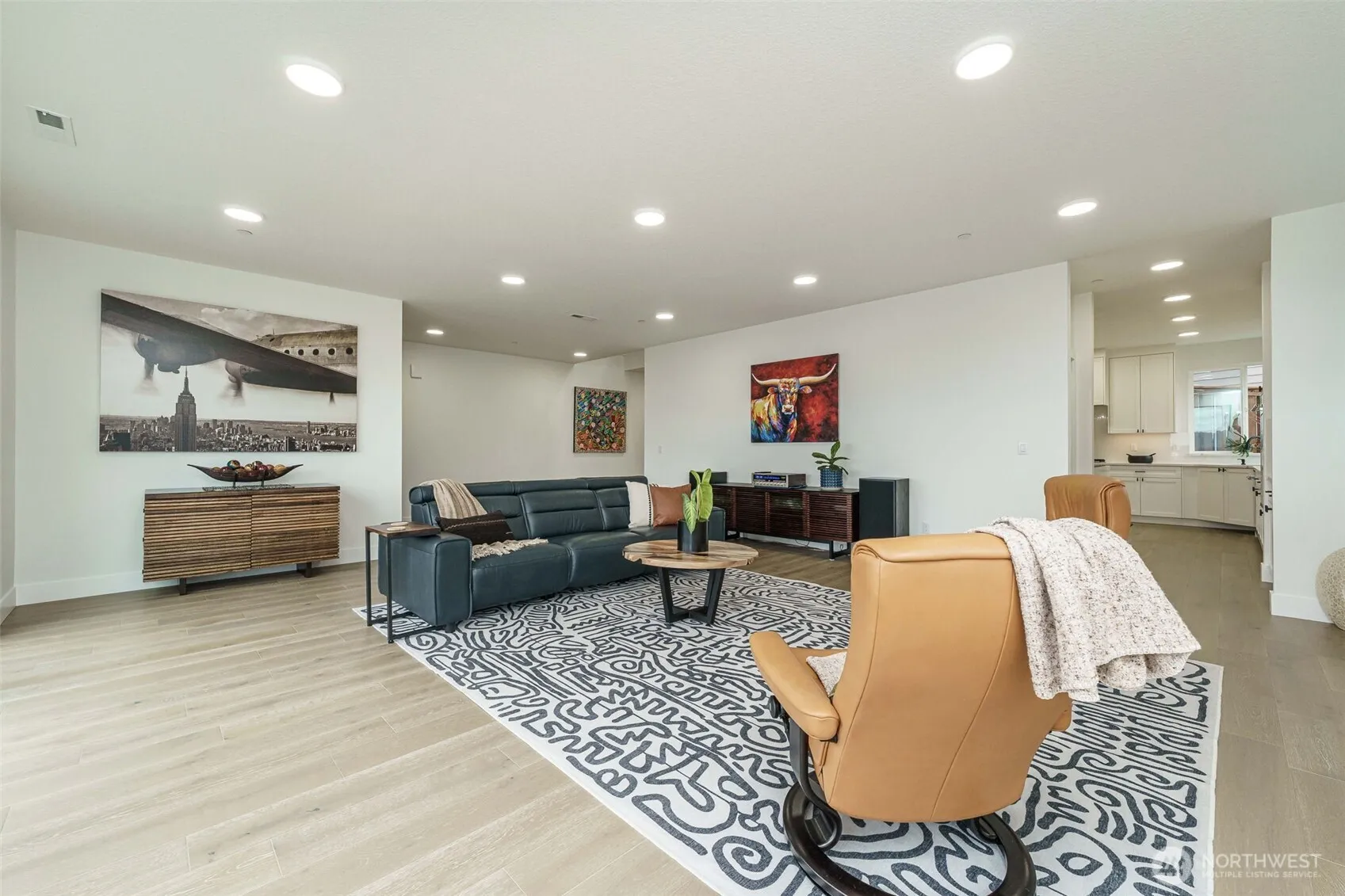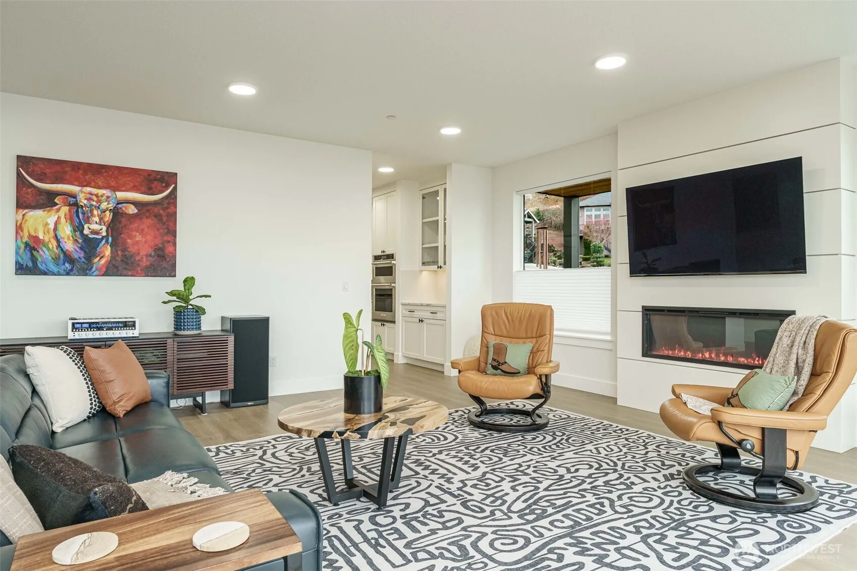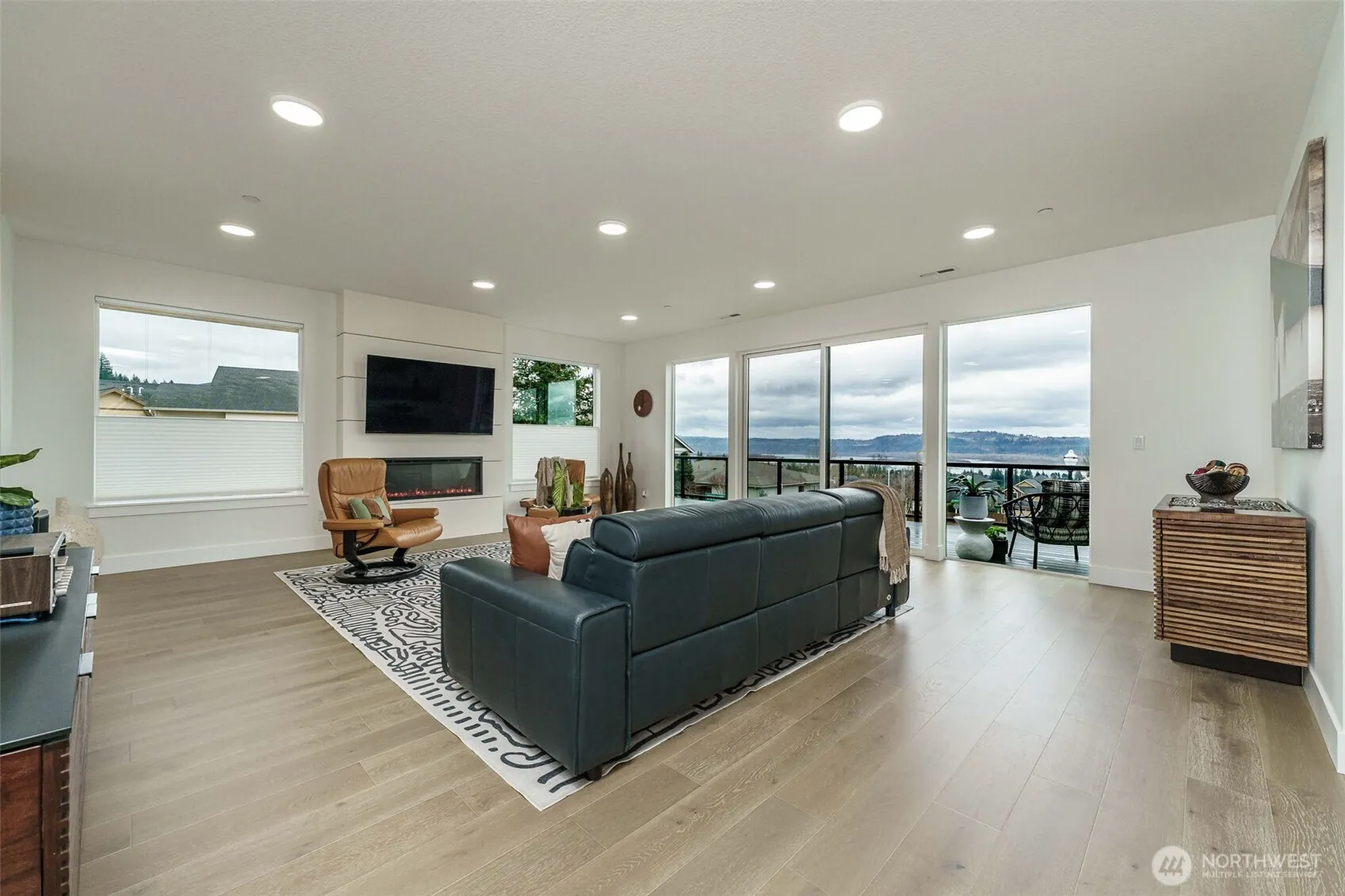 Panoramic Columbia River Views in Coveted Granite Highlands! This modern-concept home offers breathtaking views of the River, Mt. Hood & Camas-Washougal Waterfront development. Designed for high-level entertaining & everyday luxury, this stunning home sits on a rare, mostly flat corner lot—one of few in area w/ both a yard & commanding view. Hardwood floors run through most of the home, complementing a spacious kitchen w/ quartz waterfall island, under-cab lighting & walk-in pantry. Wraparound deck & private upstairs balcony maximize the views. Oversized 3-car garage has epoxy floors + tankless water heater. A main-level flex room offers a 5th bedroom or office. Rare opportunity to own a stunning view home w/ function & unapologetic style!