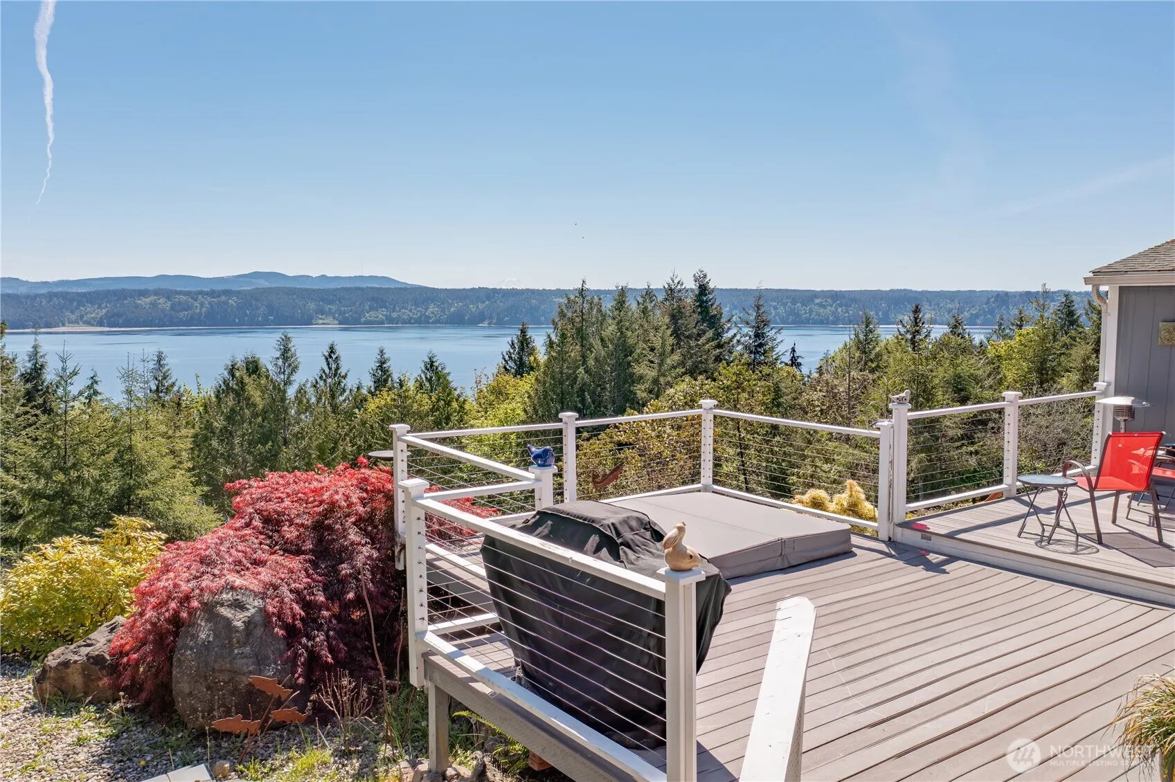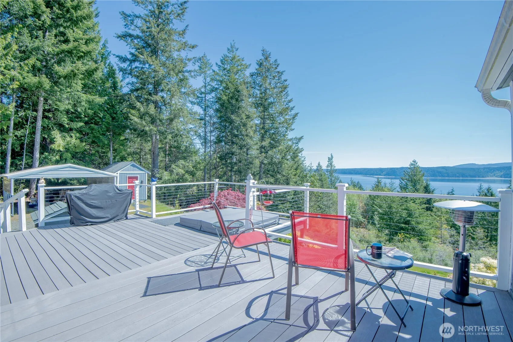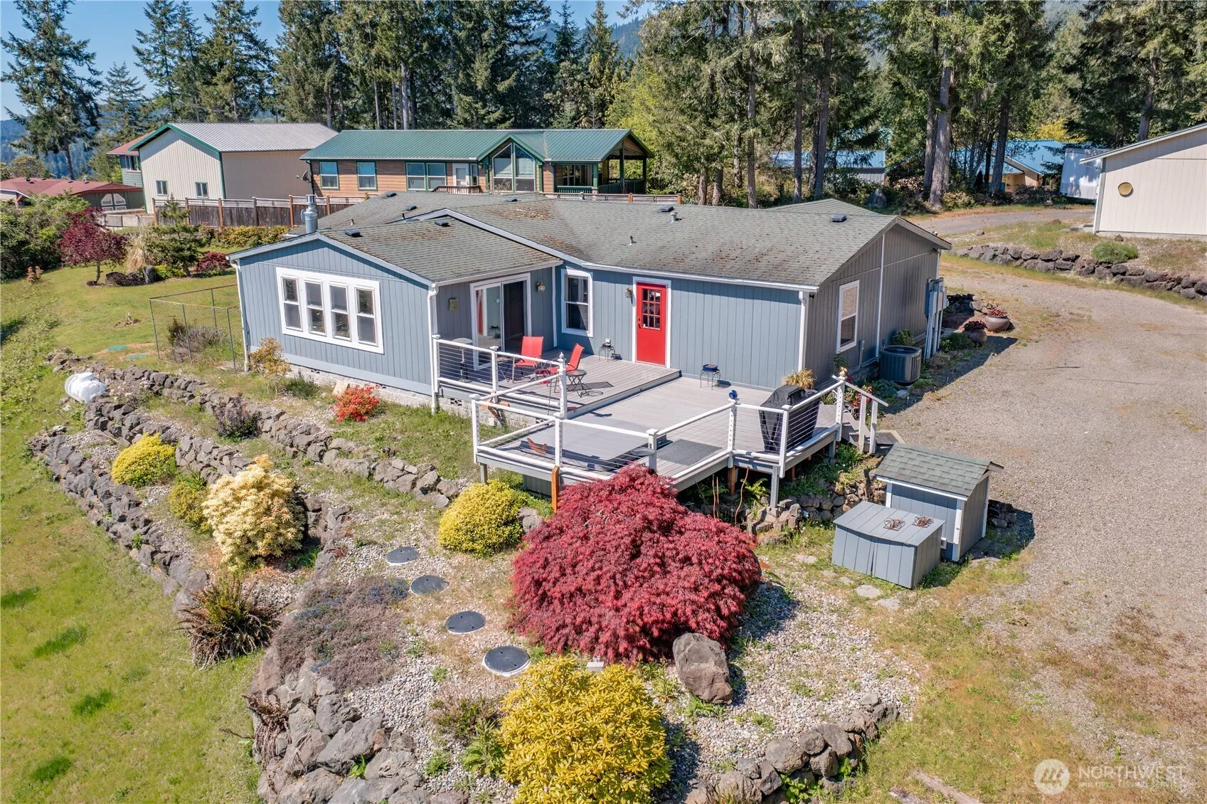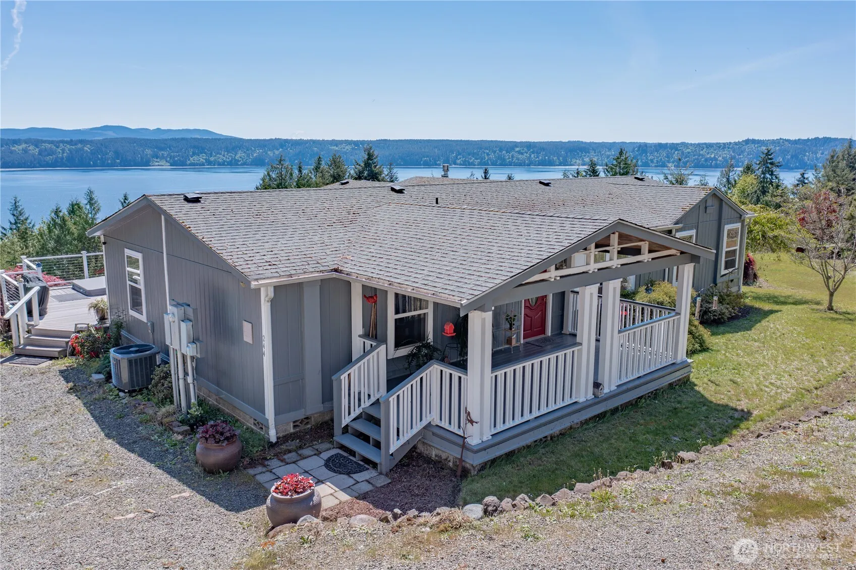 Great home with expansive view of the Hood Canal and Mt Rainier! Sitting on 5 acres this 1,822sqft home has 2bed/2bath with a living room, family room and bonus room. New roof 8/25. All rooms have walk-in closets making the bonus room perfect for guests. The kitchen is spacious with a large island, plenty of storage, granite countertops, and newer appliances. Off the deck is a laundry/mud room. The large deck for entertaining and spa for relaxing. The 864sqft two car garage has an insulated heated office/studio/shop space. NOT in an HOA. Hood Canal minutes away with abundant seafood and Olympic Mt for miles of hiking trails. Home wired for back-up generator. Generator to convey with sale. Schedule a tour with your real estate agent today!