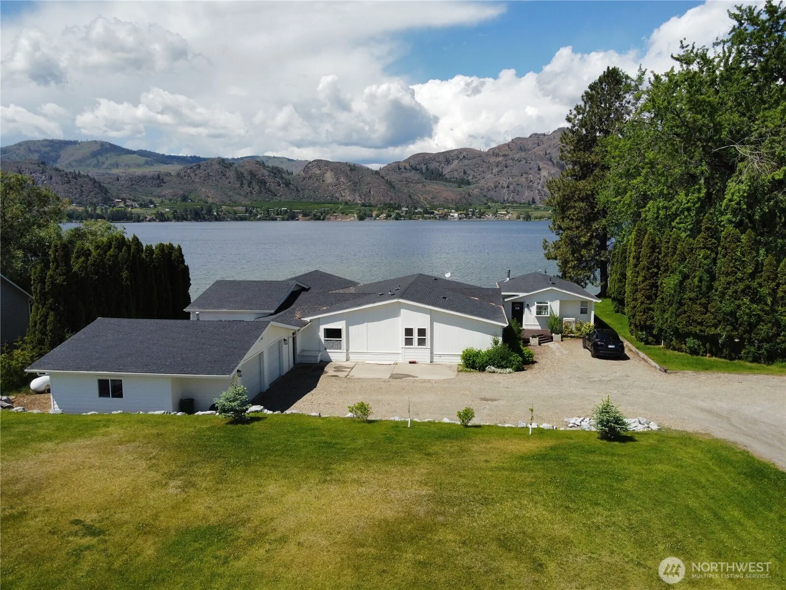 A Rare Lakefront Estate! 162 ft of private beach front and a new Hewitt roll in dock. Great investment potential in the high demand vacation rental area. No HOA! The updated main house has 3 spacious bedrooms with an additional 800 sq ft attached guest house/ADU for guests or additional living space. Recently updated with a new roof, paint, pool heater, heat pump, oven, cooktop, hot water tanks and more. Unwind on the newly built screened-in deck with a hot tub overlooking the tranquil lake, or take a dip in your very own heated indoor swimming pool, a perfect year-round retreat. Store your toys in the oversized shop with city water and power. Property can be subdivided into 2 parcels and sold separately with public lake access.
