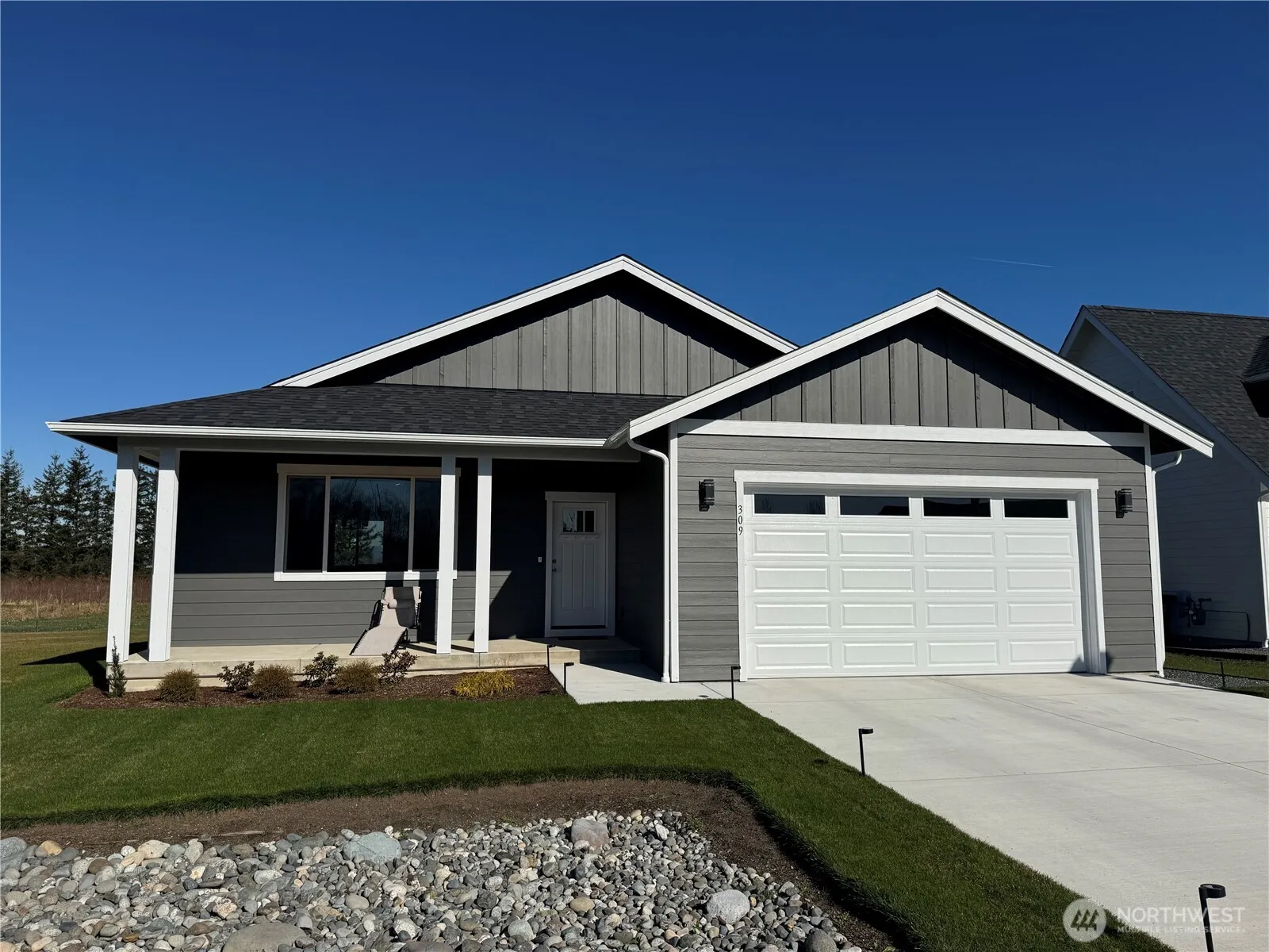 Introducing a stunning new ranch-style home, built in 2024, featuring a spacious single-level layout with three inviting bedrooms. Designed for modern living, this residence offers vaulted ceilings that enhance the open feel and natural light throughout. The gourmet kitchen showcases elegant quartz countertops, perfect for culinary enthusiasts. Enjoy sustainable living with solar energy and natural gas for efficient heating and cooking. Step outside to a great green space view, ideal for relaxation or entertaining. This home seamlessly blends style, comfort, and eco-friendly features, making it a perfect retreat for anyone seeking a tranquil lifestyle
