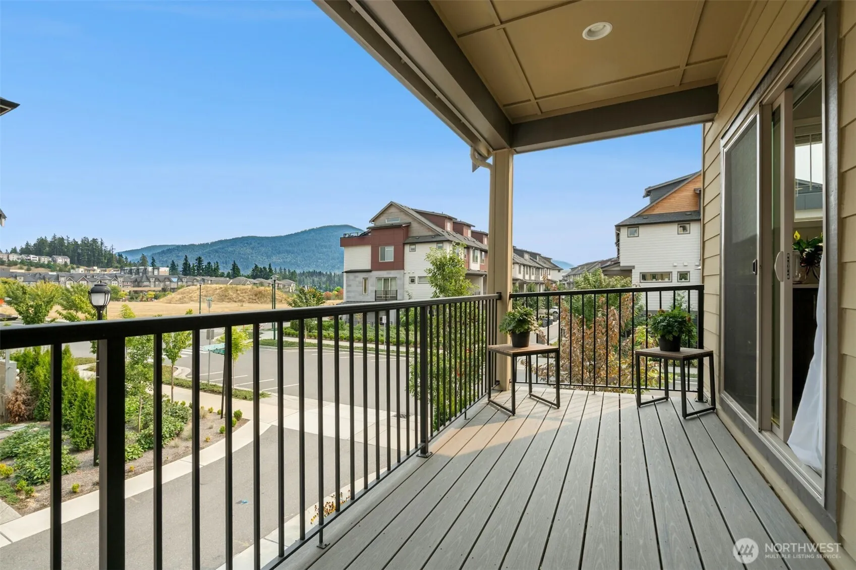 On a coveted corner lot, this end-unit former model home in the Issaquah Highlands combines style, comfort & custom finishes w/ sweeping mountain views. Sunlit interiors showcase designer window treatments & chic accent walls; while the chef’s kitchen w/ quartz counters, Café Series appliances & buffet bar flows to inviting living areas & a covered deck. The lower level offers an office or guest suite w/ a ¾ bath & a patio; while the spacious upper bonus room w/ its own full bath, extends to a rooftop deck that captures glowing sunsets. The primary suite creates a spa-feel retreat w/ an en-suite & walk-in closet. With A/C & close to dining, parks, pickleball & Issaquah Schools, this home offers the best of elevated design w/ close-in ease!