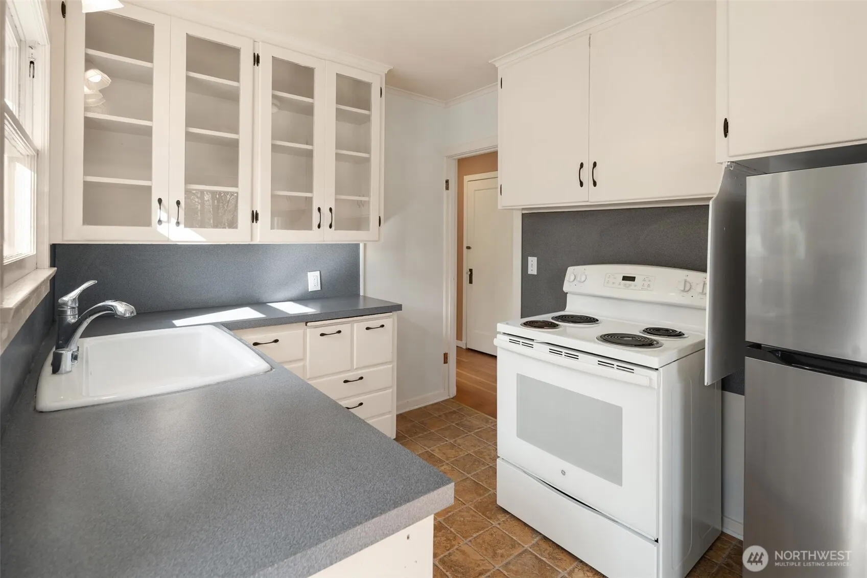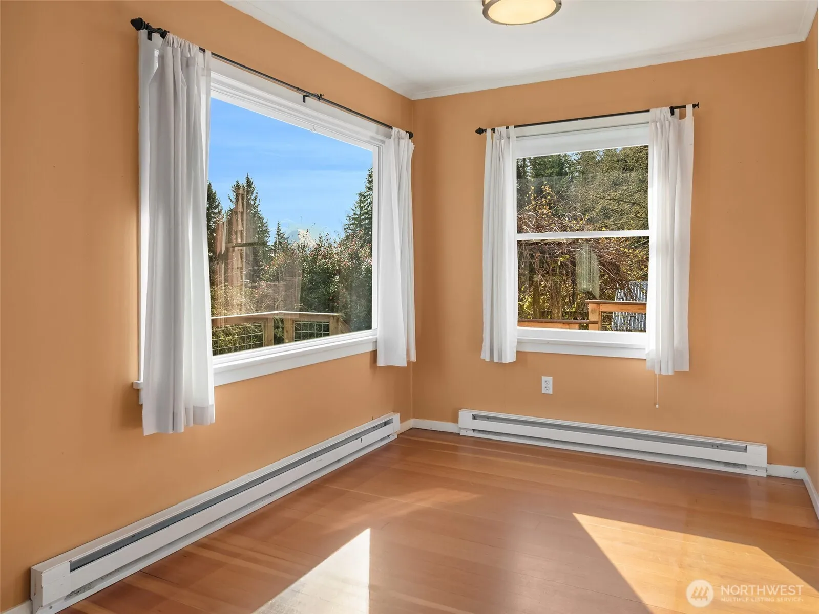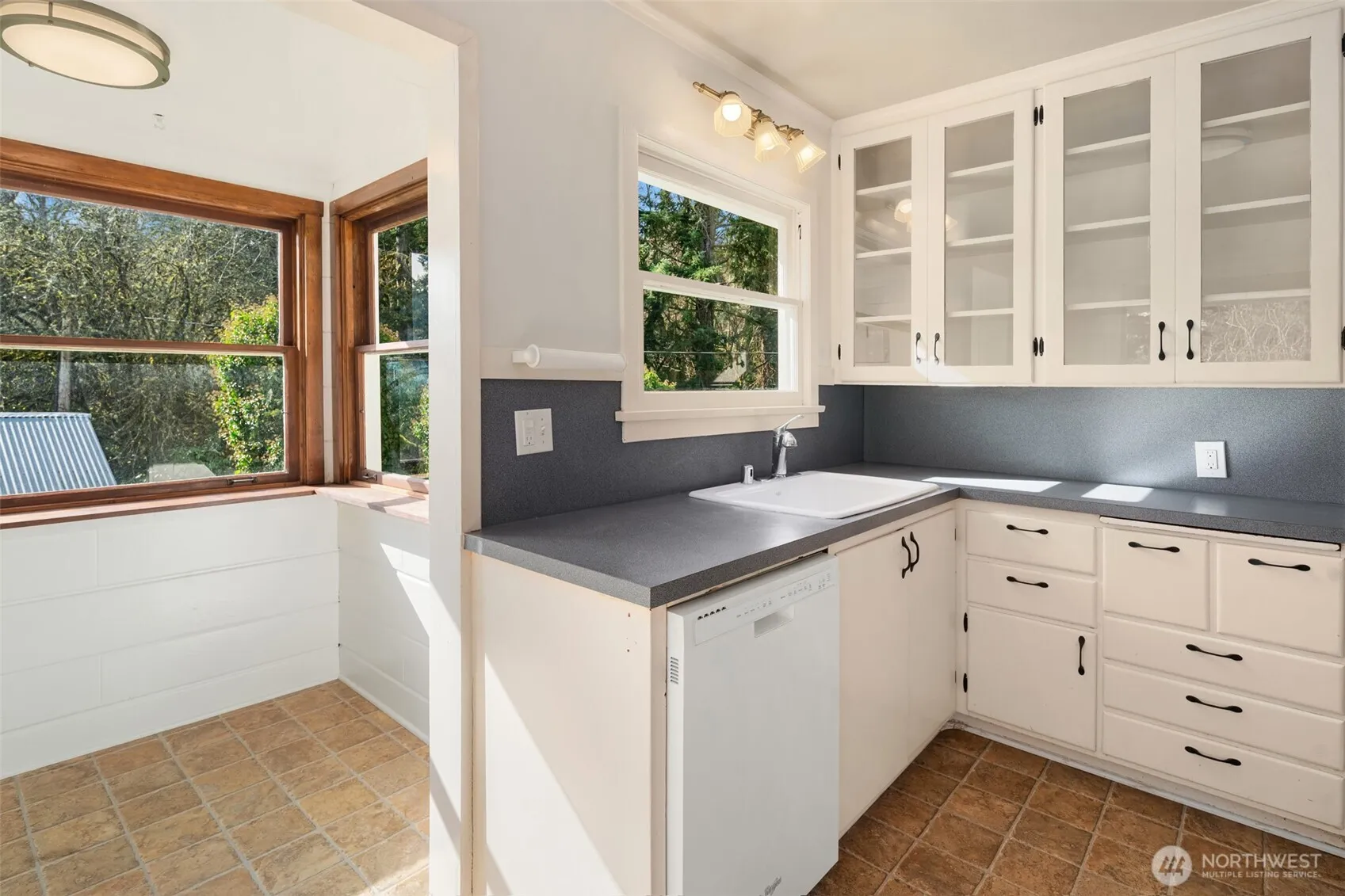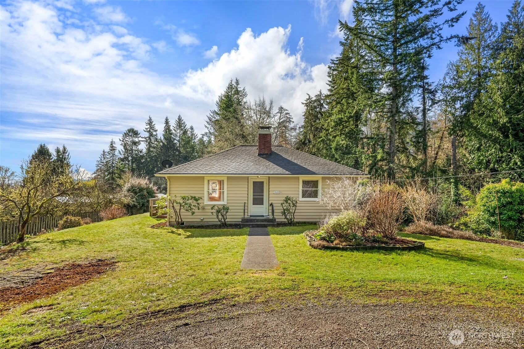 Never Before on the Market. This charming, lovingly cared-for home features 2 bedrooms & 2 bathrooms, a spacious living room, cozy fireplace, dining area, large windows that fill the space with natural light and original fir flooring that adds warmth & character. The partially finished daylight basement boasts an additional bedroom & full bath, updated electrical panel, mini-split heating/cooling, & a laundry area. Situated on a shy acre, the property includes a large deck that overlooks the mature landscaping, fruit trees, grape arbor & a partial view of Mount Rainer. Located on a quiet dead-end street, this home is complemented by the soft sounds of a babbling seasonal brook that winds through the cedar grove in the adjacent ravine.