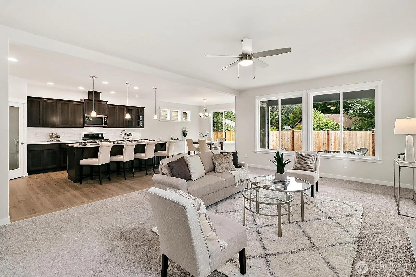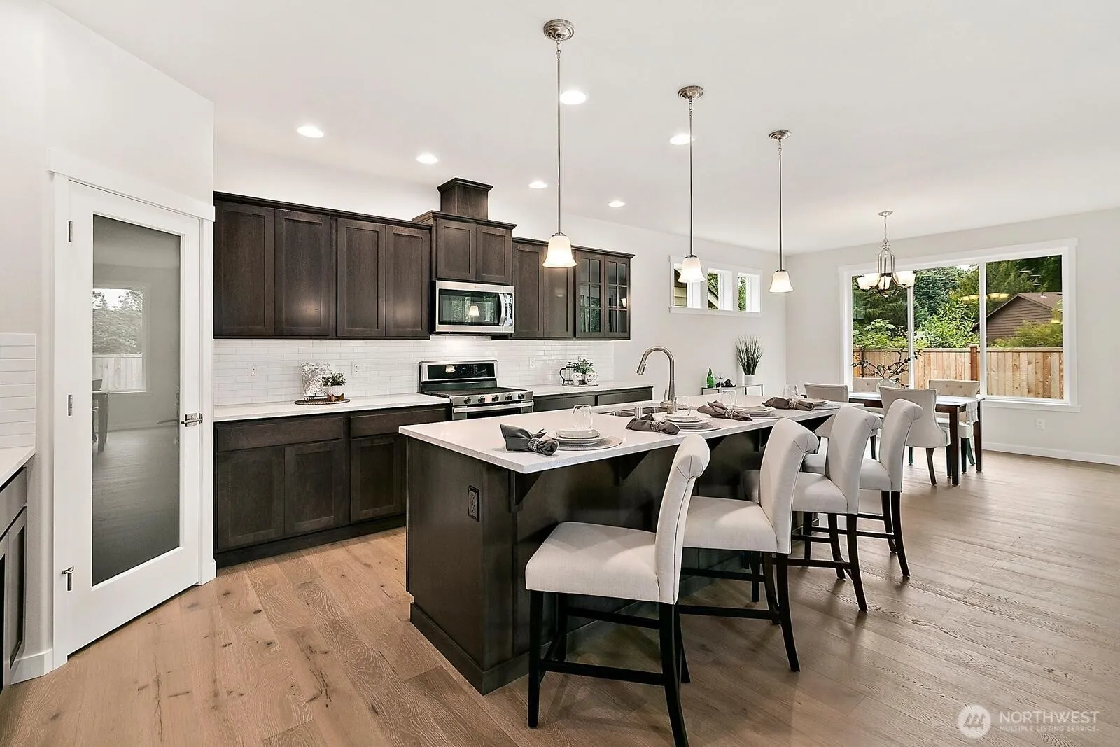 Skyview Estates in Tumwater showcases this new construction beauty by local builder Rob Rice Homes. The 2-story Birch plan spans 2,432 SF, featuring 4 upper-level bedrooms (one oversized, ideal as a bonus room) and 2.5 baths. The kitchen shines with quartz countertops, Sable Maple shaker cabinets, a gas range, and a walk-in pantry. Hardwood flooring through the entry, kitchen & dining, quartz counter tops throughout & quality finishes. Step outside to a covered patio and a fully landscaped yard with privacy fencing. Energy efficiency abounds with solar panels, a heat pump for climate control, and an electric hybrid hot water tank. Conveniently located near Black Hills High School, Costco, and quick I-5 access!