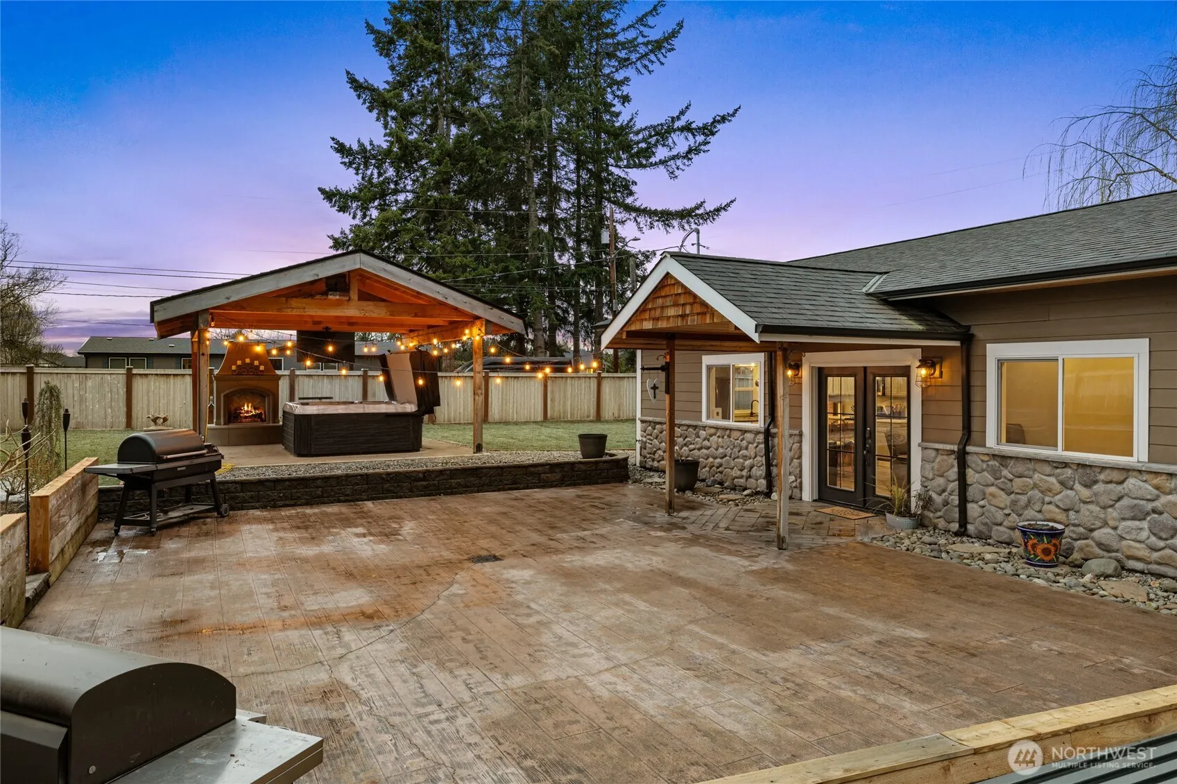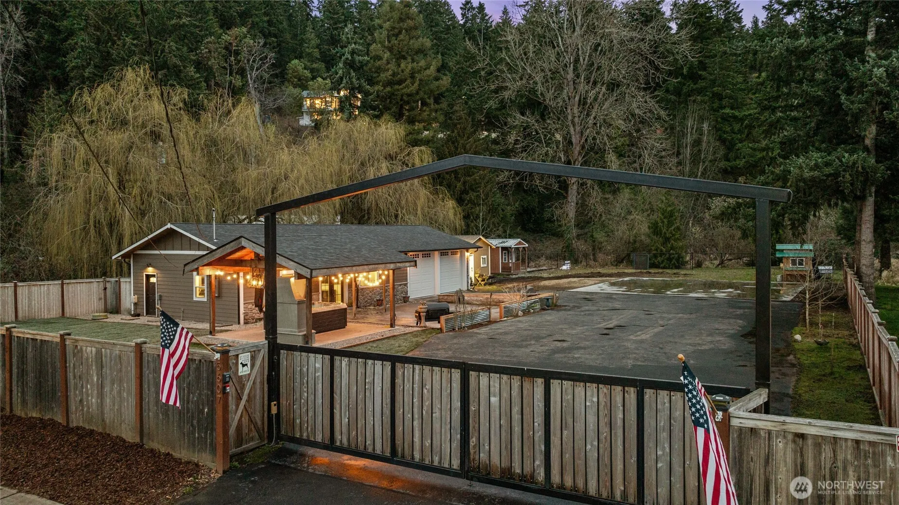 Charming 2-Bedroom, 1-Bath Home on Over Half an Acre nestled in the peaceful town of Sumner & surrounded by nature, w/ tranquil Salmon Creek running along the back of the property, this home provides the perfect blend of comfort & privacy. Completely remodeled in 2022. One of the standout features is the massive 40′ x 40′ concrete slab already in place.It’s primed & ready for your dream garage/shop, the perfect space for all your hobbies, or even a home business. Unwind in your private hot tub under the charming gazebo, complete w/ a gas fireplace and TV – the perfect setting for after a long day. RV & toy parking.Fully fenced w/ gated entry, giving you the privacy & security you need to enjoy your peaceful surroundings.