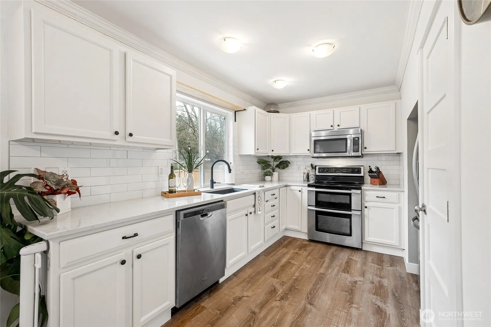 Exquisite 2BR, 2.5 bath remodeled home w/fenced yd in the heart of Snoqualmie Ridge. Lives like a traditional home but offers all the conveniences of condo living. HOA maintains the exterior, including siding, roof & yard! Dining rm is open to the remodeled kitchen & welcoming family rm. Primary ste features a full bath & walk in closet. 2nd BR, another full bath & laundry complete the upper level. Fully fenced yd offers a lg patio, garden bed, Mt Si views & storage shed. Backs to community garden & extensive community trail system. Walk to shopping, dining, parks & trails! Only 24 miles to Seattle or 30 to skiing. So convenient, yet surrounded by stunning mountain views, trails & endless adventure opportunities. The perfect location.