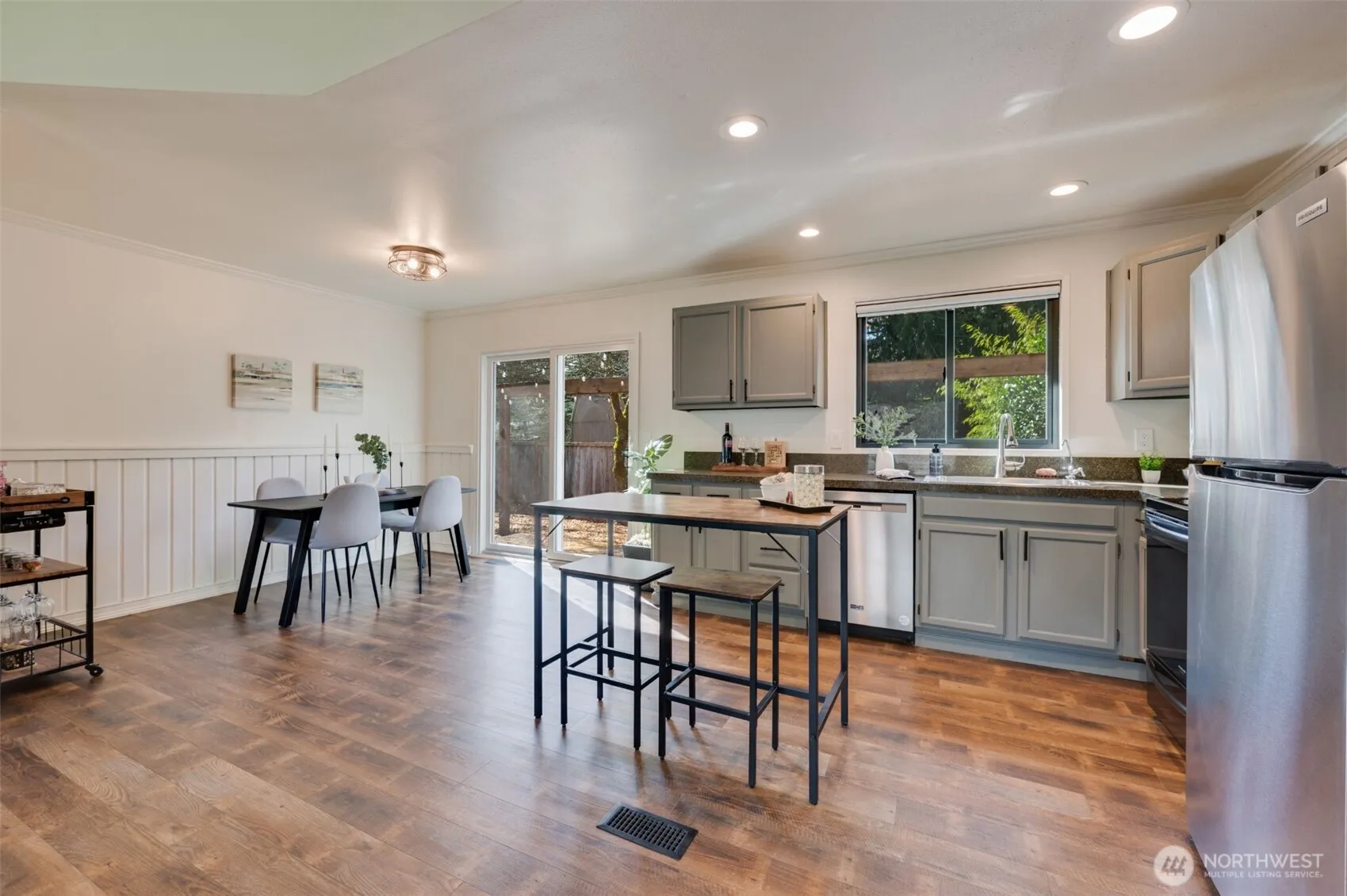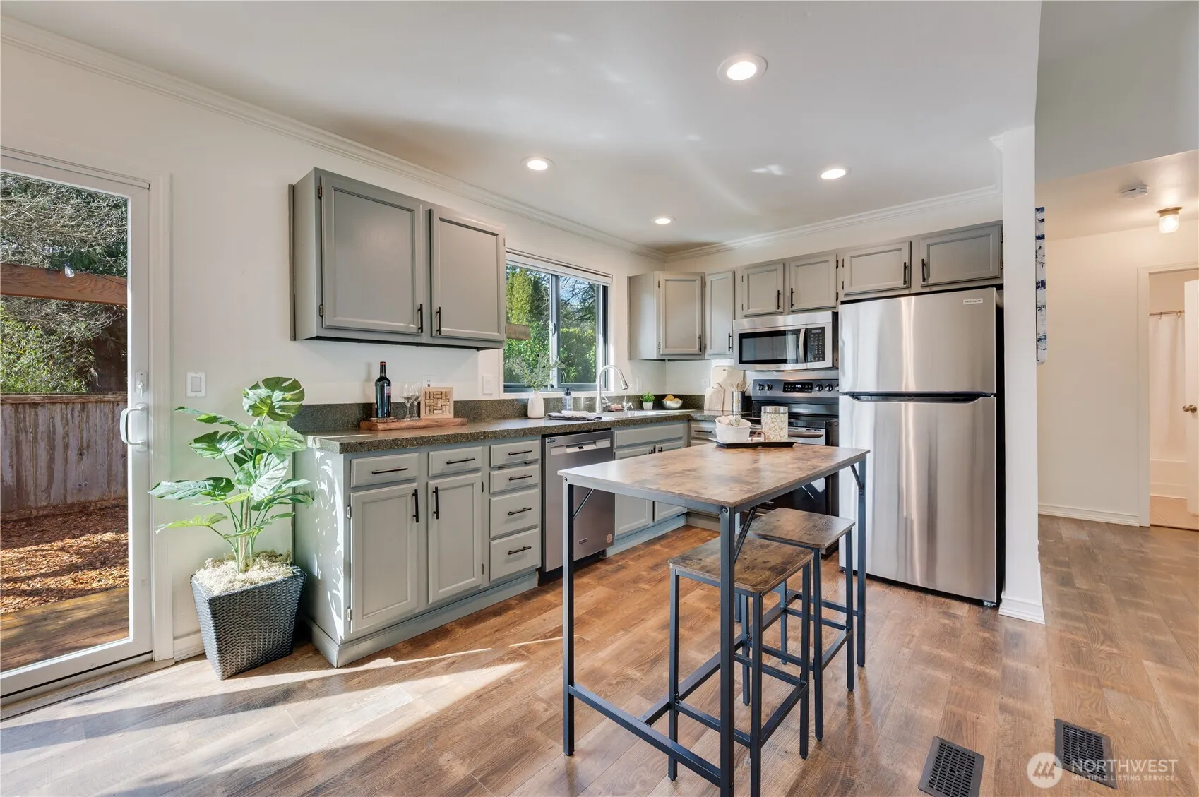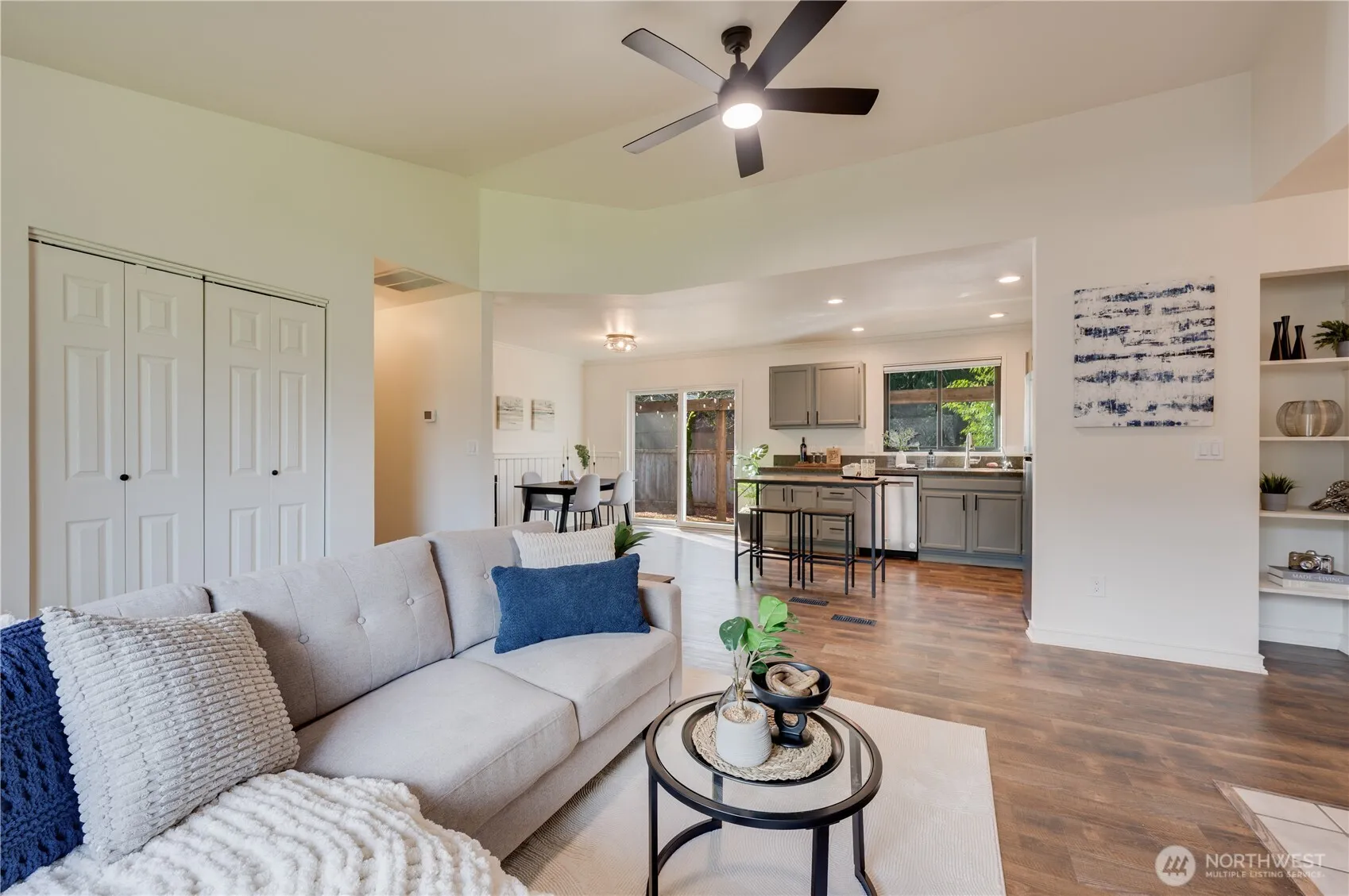 This delightful rambler offers an open, sunlit living room showcasing stunning views of Mt. Si that are sure to impress. The inviting kitchen boasts granite countertops, updated SS appliances, new kitchen sink, and a convenient pantry. Stay warm by the cozy wood-burning fireplace in winter, and enjoy the refreshing AC in the summer. The spacious primary bedroom with its own en-suite bathroom is located away from the two additional bedrooms, one of which features a built-in desk, ideal for a home office. The fully fenced yard offers a large patio for relaxing outdoors & a convenient storage shed. The two-car garage has an EV charger. Situated near top rated SVSD schools, shops, restaurants & the Snoqualmie Valley Trail. Welcome home!