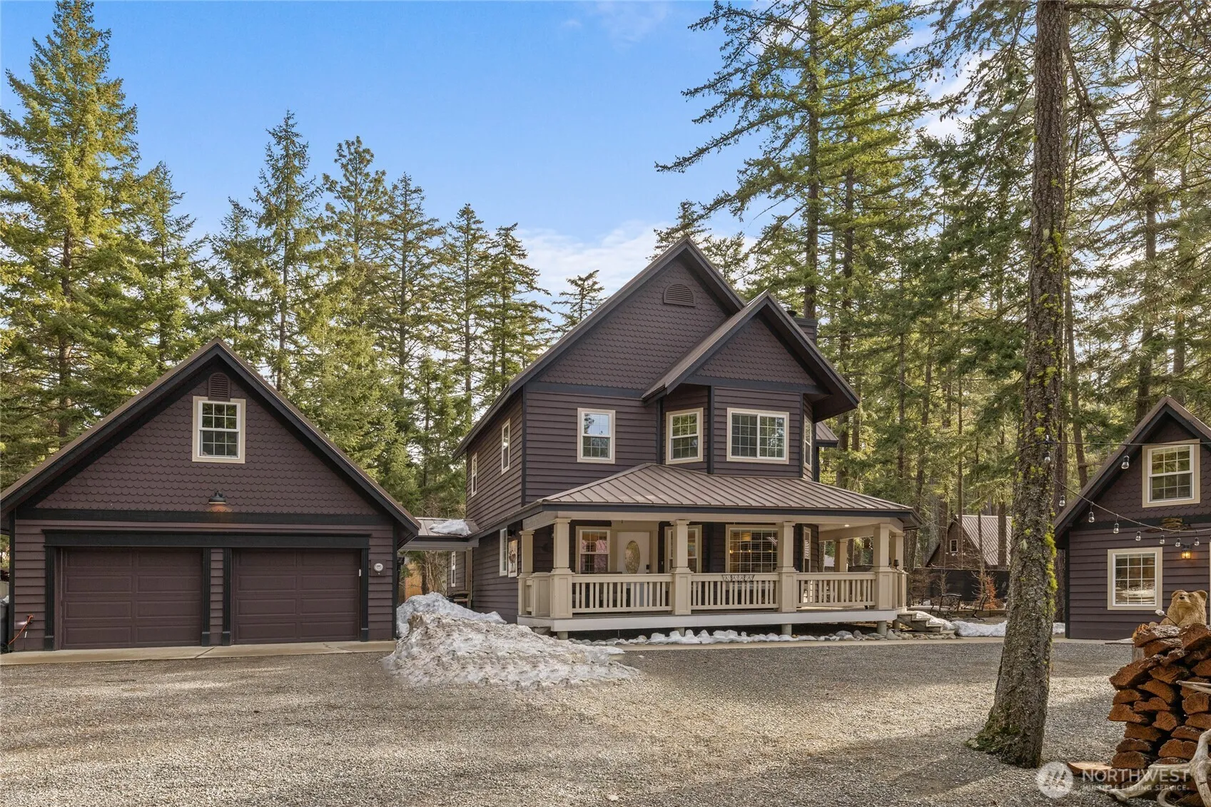 Stunningly updated, fully furnished home w/ a wraparound porch. The main home features 4 bedrooms, a main floor primary suite w/ an ensuite bathroom & private den. The upper level includes 3 bedrooms, a full bath,and ample storage. The DADU tiny house, is furnished w/ 1 bedroom, 3/4 bath, & kitchen, has rented for $1,200/month. Main home updated with custom cabinetry, new quartz, new flooring, whole-house vacuum, updated appliances. Updated sinks, faucets, toilets, & fixtures. Home is 2165 sq ft. DADU is 408 sq ft. Garage has 16×28 usable attic. The property is level and has split rail fencing, & two fire pits. Oversized garage, parking for RV/boat, & 8 cars. Short walk to Speelyi Beach & trails. Enjoy year round access, & 4 seasons of fun.