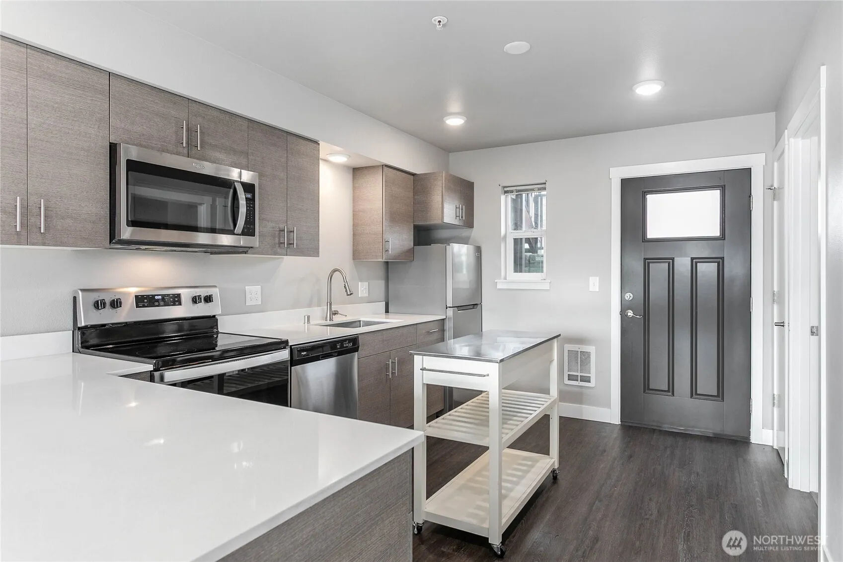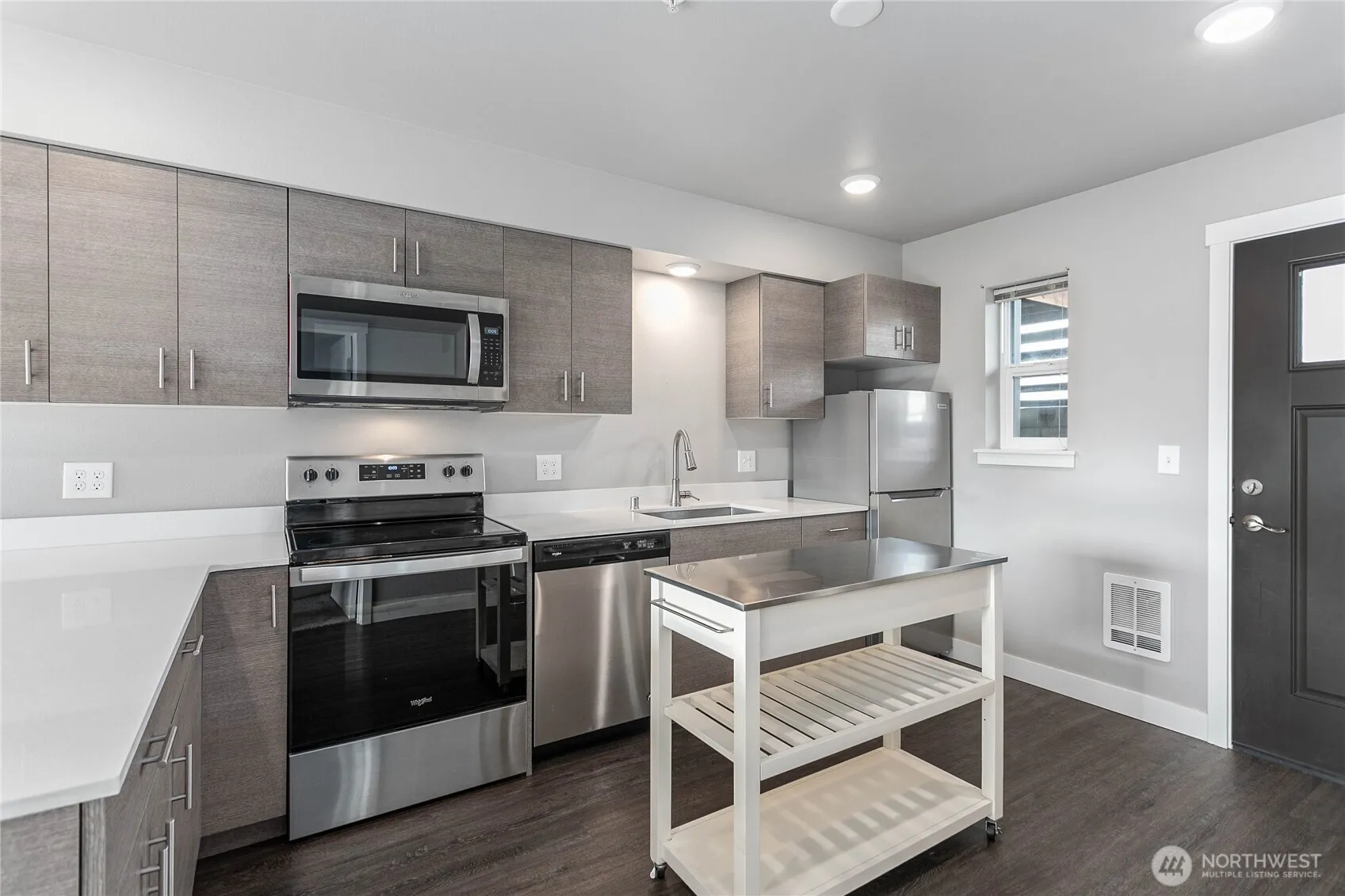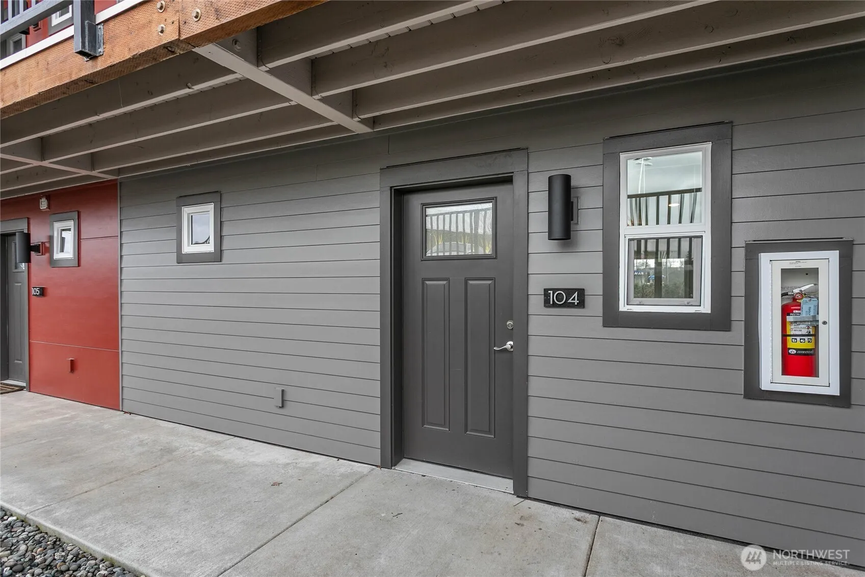 Immaculately cared for! Enjoy contemporary living in the heart of Lynden, where small-town charm meets modern convenience. This beautifully appointed ground-floor condo features a level patio overlooking Fishtrap Creek and lush green space, perfect for small pets and peaceful mornings. The open floor plan creates a bright, airy feel, complemented by stainless steel appliances, soft-close cabinets, quartz countertops, and durable vinyl plank flooring. The spacious bathroom includes a compact washer/dryer for added convenience. Low monthly dues and dedicated parking right in front make this an excellent home or investment property. Don’t miss this rare opportunity in a prime location, just steps from coffee shops, parks, and local amenities!