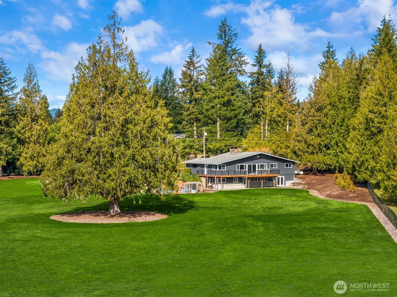 Discover an extraordinary estate featuring breathtaking views of Mount Rainier! This stunning 3,000-square-foot remodeled home features four bedrooms, perfect for living or entertaining. Enjoy a modern kitchen, inviting living spaces, and ample natural light throughout. Set on a remarkable 9.8-acre lot, this property includes beautifully maintained Christmas trees and 5 of the acres are fenced for privacy and security. With the potential to subdivide, you can create a one-of-a-kind estate or keep it as a cherished compound. Experience the perfect blend of comfort, beauty, and limitless possibilities. Don’t miss out on this gem!