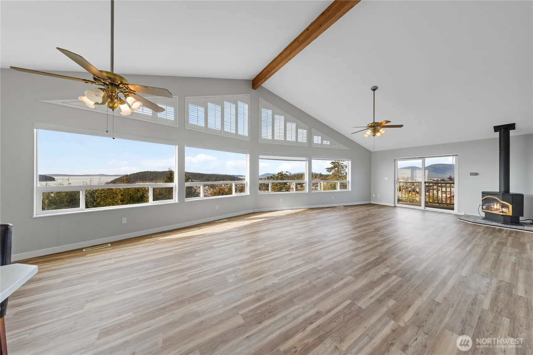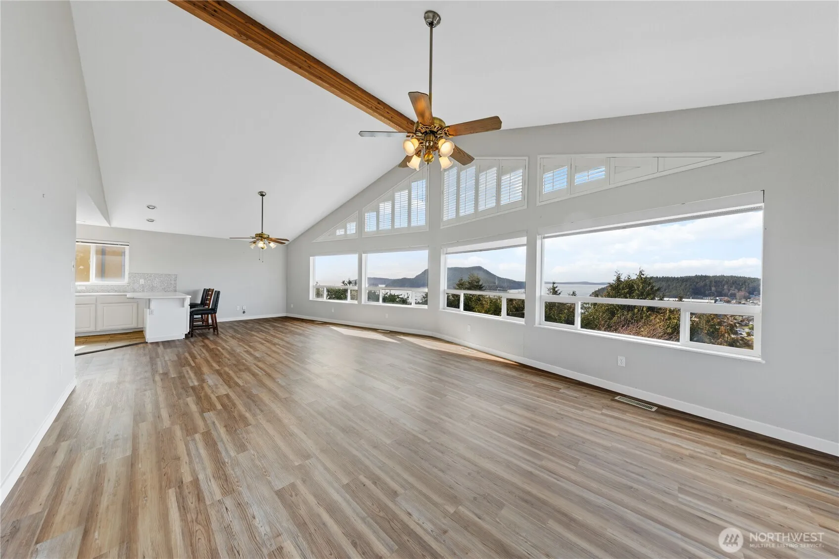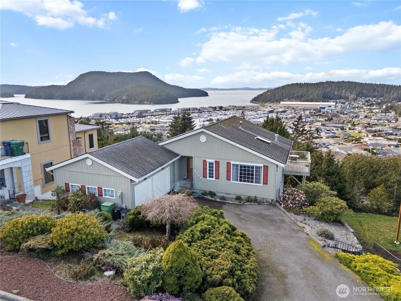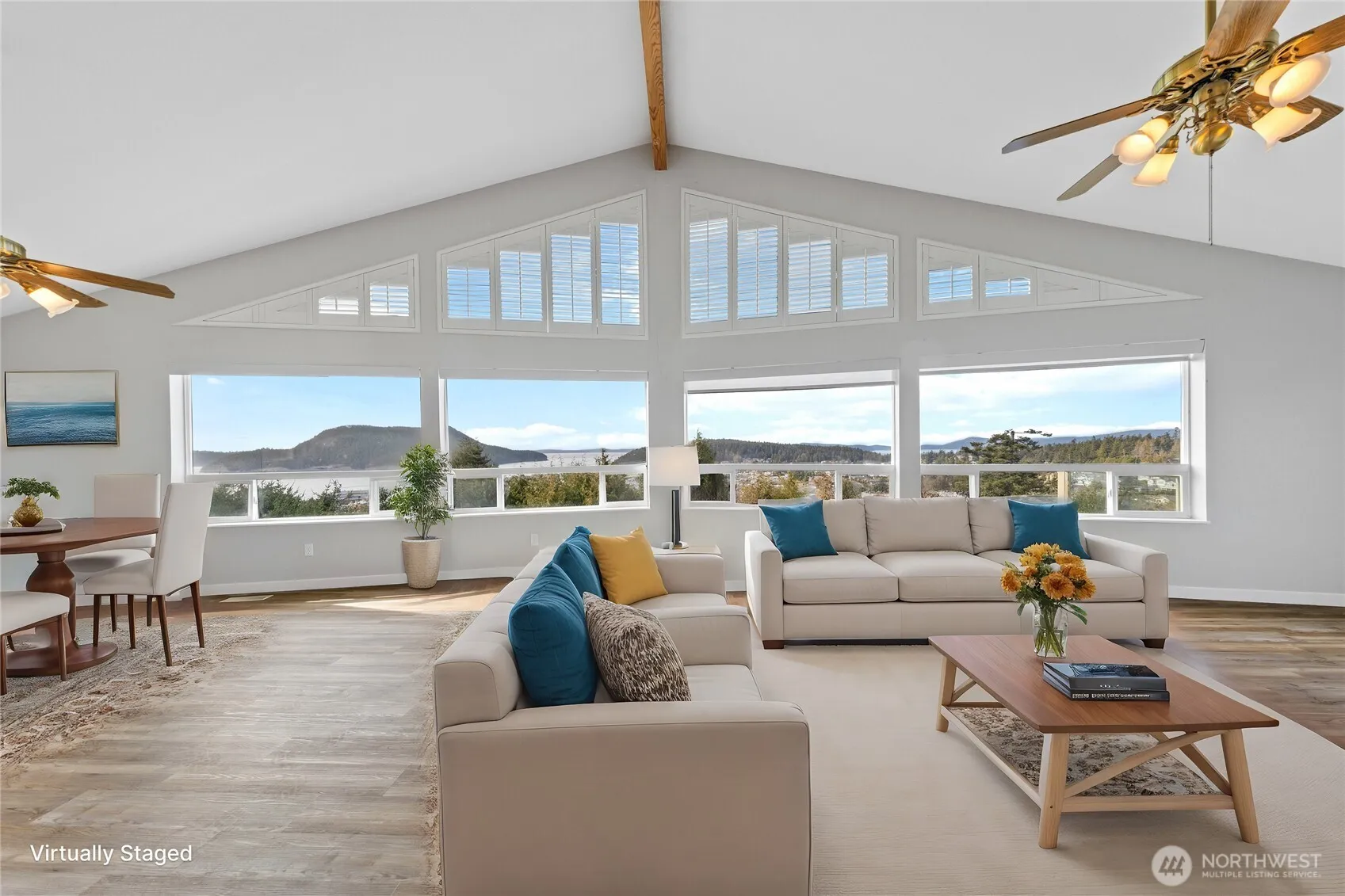 Perched in the sought-after Skyline neighborhood, this multi-level home offers breathtaking panoramic views of Burrows Bay and the San Juan Islands. Enjoy community amenities, including clubhouses, a marina, sports courts, parks, and beach access. The main level boasts a vaulted-ceiling living room with expansive picture windows, filling the space with natural light and stunning vistas. Gorgeous laminate flooring throughout the home. The primary bedroom is conveniently located on the main floor. Additional rooms provide endless possibilities—bedrooms, office space, craft rooms, play rooms and more. Embrace the ultimate coastal lifestyle in this exceptional home, perfectly positioned to capture the beauty of the Pacific Northwest!