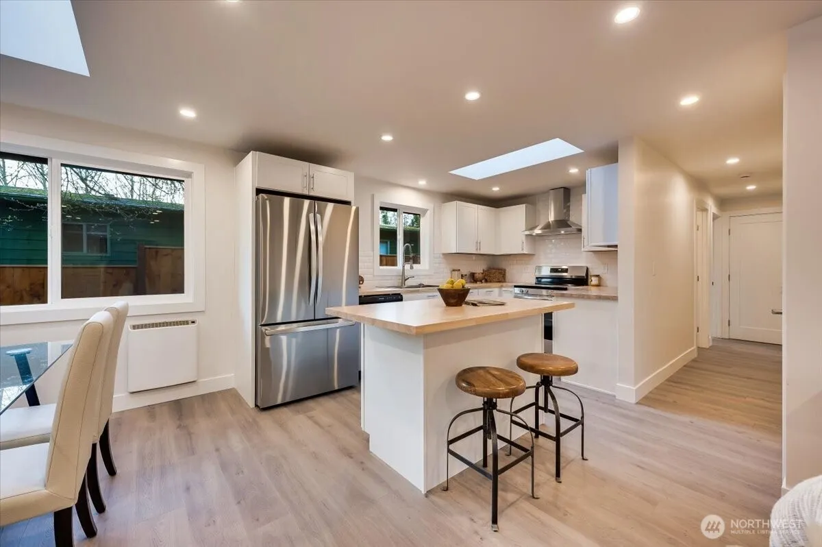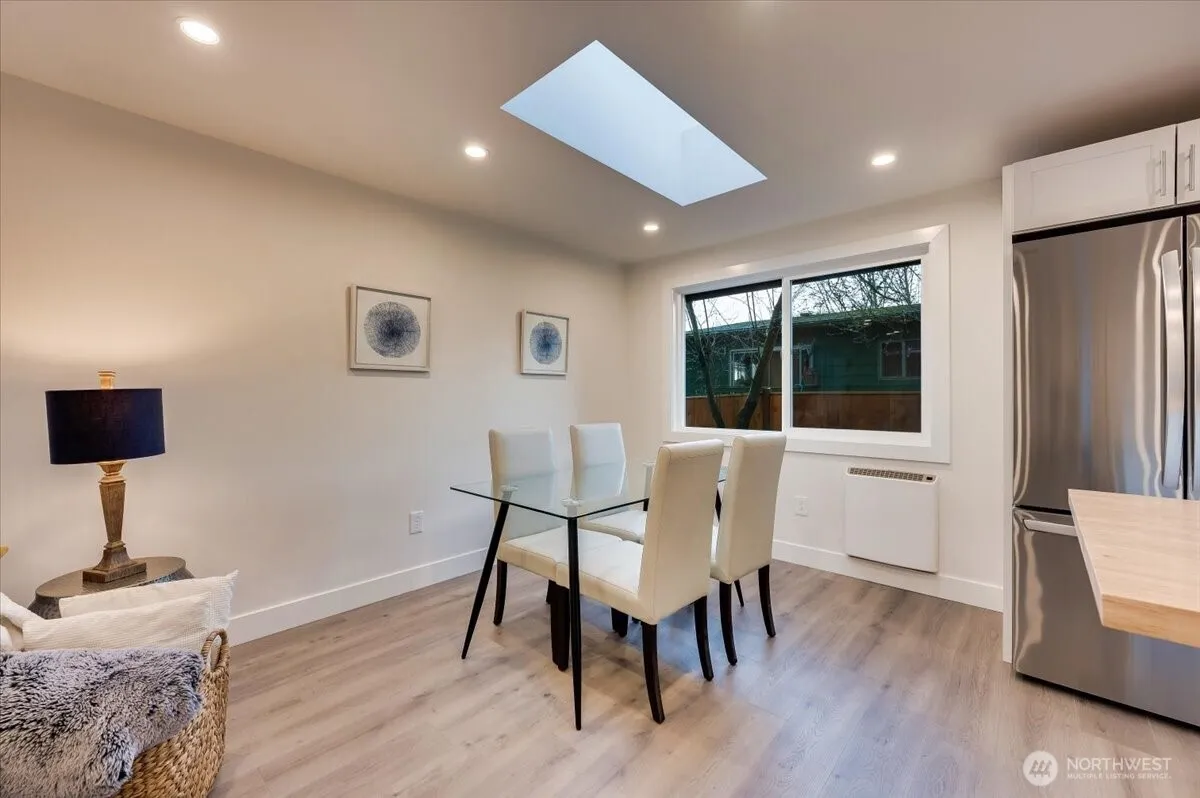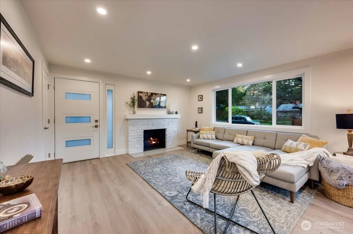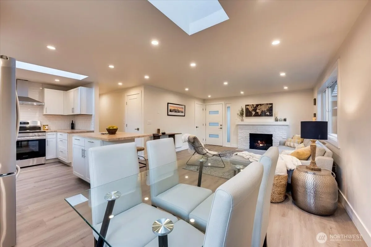 Find tranquility in this thoughtfully updated Lake Forest Park rambler! Natural light pours in through new skylights to this open-concept floorplan connecting kitchen, dining, & living room, highlighted by a cozy wood-burning fireplace. This home features 3 bedrooms & a well-appointed bath, along w/significant upgrades: a brand-new roof, updated electrical system, fresh insulation in the attic & crawl space, plus new energy-efficient windows & doors. Step outside to a spacious, fenced backyard—a true retreat for birdwatching, gardening & outdoor fun. Newly paved driveways w/covered 1-car parking & additional storage, ensures convenience & functionality. Set in a coveted neighborhood w/easy access to parks, schools, & local amenities.