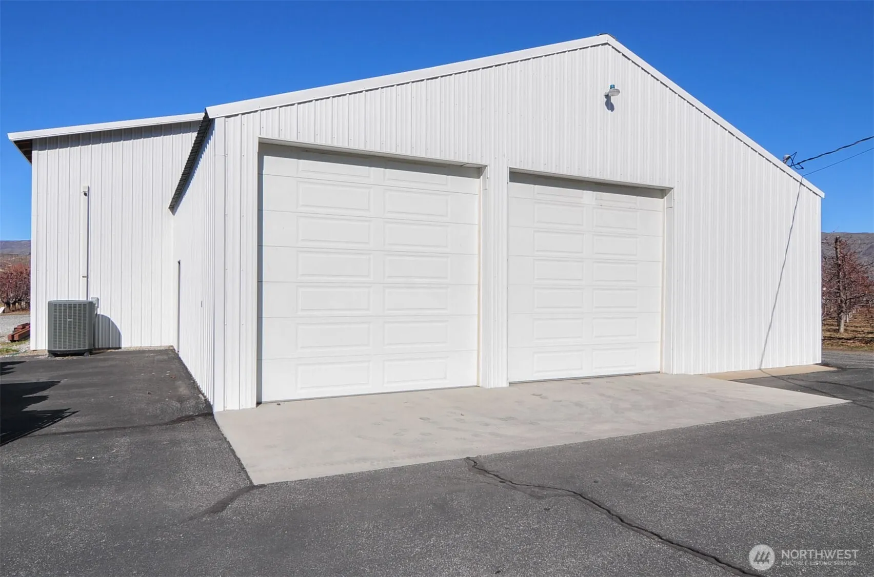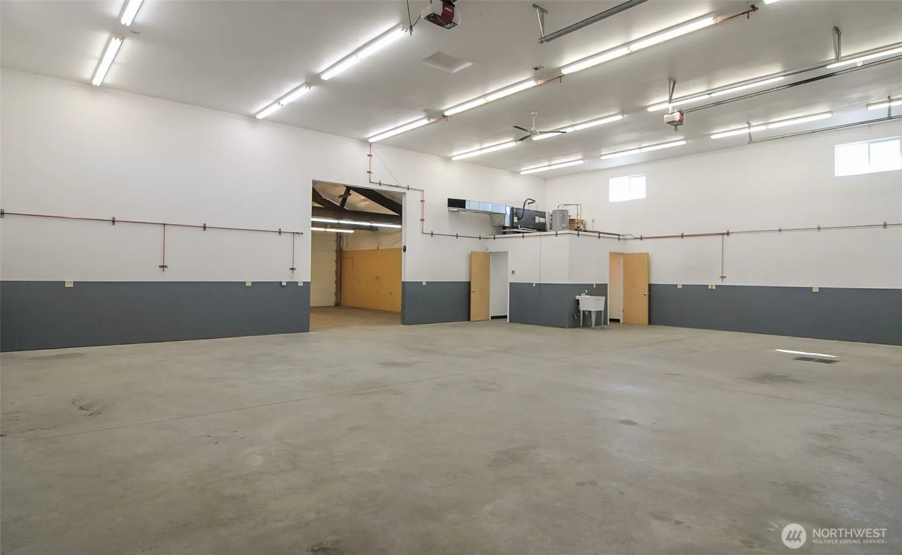 GREAT LEASE OPPORTUNITY FOR LARGE SHOP and/or STORAGE BUILDING! BRIGHT & CLEAN, 3200 sq. ft. with 2 spacious sections that can be separated. The front is 40′ X 30′ with 11′ doors and back is 40′ X 50′ with 14′ doors. The building has 2-man doors, central air & heat, small office, half bathroom, ceiling fan, floor drain, air lines for a compressor, 2 electrical panels and an alarm system. Use the west driveway.