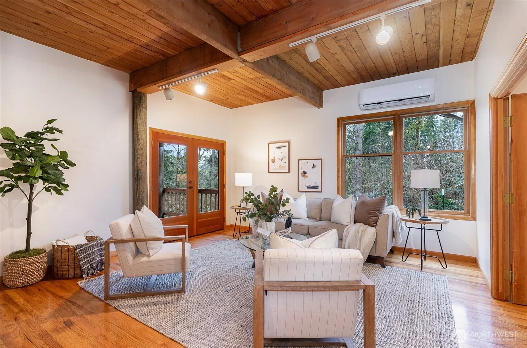 A private retreat on 9 acres, minutes from Duvall in the desirable Cherry Hill neighborhood. This stunning home offers an open-concept design boasting soaring ceilings, sunrooms featuring expansive windows, abundant natural light and hardwood floors. French doors lead to an entertainment-sized covered deck, seamlessly blending in/outdoor living and a dedicated space for office, studio or gym. New appliances throughout,AC, fresh paint, carpet, Lutron lighting and countertops. 980sf 4 car garage w/ EV Charger and water for potential ADU. Shop, private well with new 2-stg whole house filter, pastures and dog run. This property combines privacy, modern updates and natural beauty—a perfect place to call home. Ask about 1% off special financing!