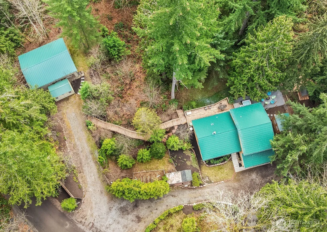 Private Retreat w/ DADU – Tucked beyond a picturesque Sycamore tree tunnel & perched atop Indian Hil, this private country home is full of warmth & character. The main house features 4 bedrooms & 2.5 baths, a white kitchen w/ granite & handcrafted reclaimed wood butcher block island. Hardwood & travertine floors flow throughout w/ heated floors on the main & lower levels. Step outside to a sprawling deck w/ a hot tub, firepit, & barrel sauna. A bridged walkway leads to a separate ADU w/ an additional bedroom, loft, bath & a kitchenette makes this property is an incredible opportunity for those seeking a serene retreat or an income-producing investment. Fruit trees, garden space, & a whole-home generator, this home is a true retreat.
