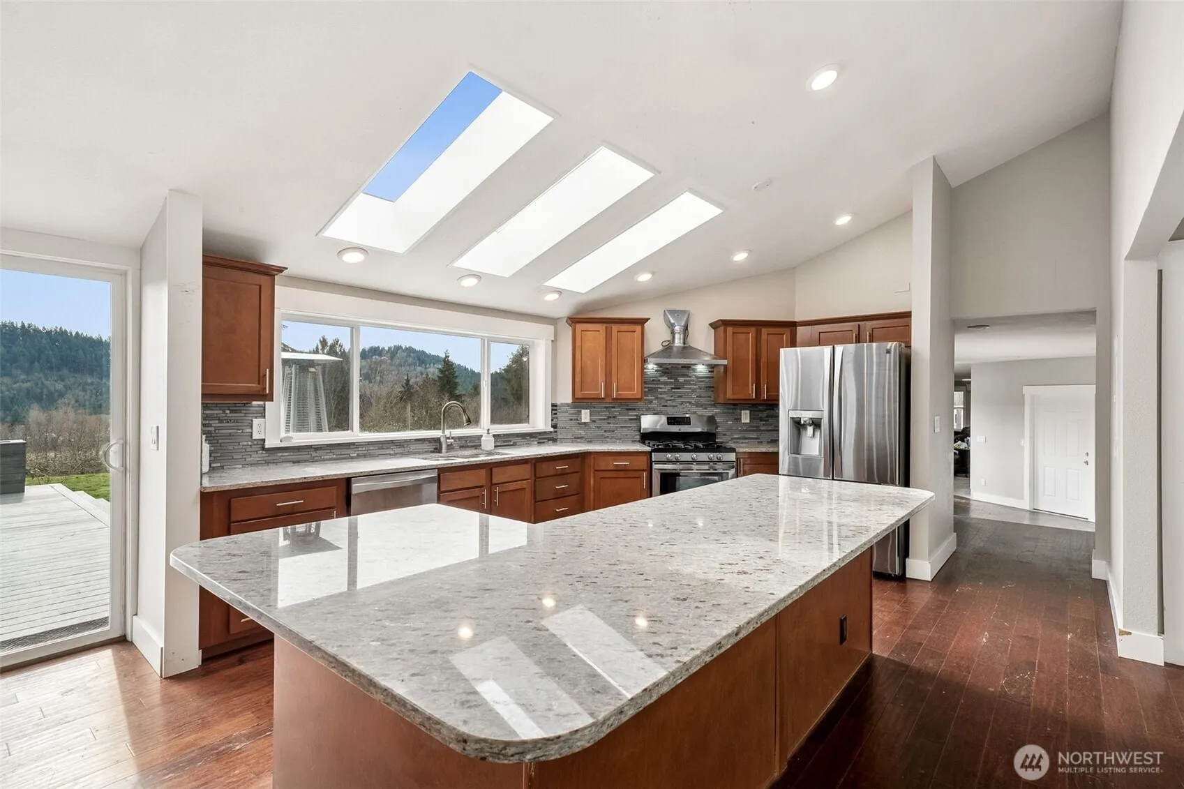Sprawling rambler over looking South Prairie Valley! Such a stunning and rare property! Home offers an inviting floor plan w/ 4 large bedrooms w/ walk-in closets, 3 full bathrooms w/ granite counters and tiled shower, spacious living room w/ vaulted ceilings, gourmet kitchen w/ granite counters, SS appliances w/ propane stove, large laundry room w/ wash sink, massive media room w/ wood stove, bonus/flex room, interior has fresh paint and wired for a generator! Garage is oversized w/ dual hot water tanks and work benches. Outdoor boast newer trex deck, built-in planters, seating, swim spa and light system. Plus, future pool site, garden area, chicken coop and RV parking! Possibilities are endless w/ this dream property!