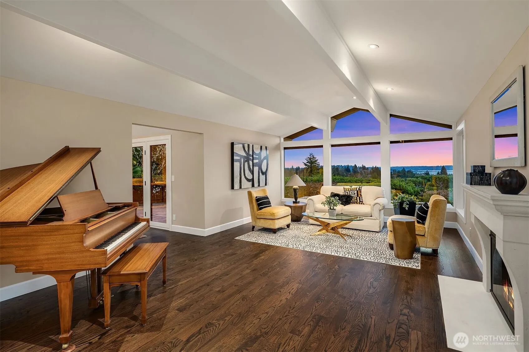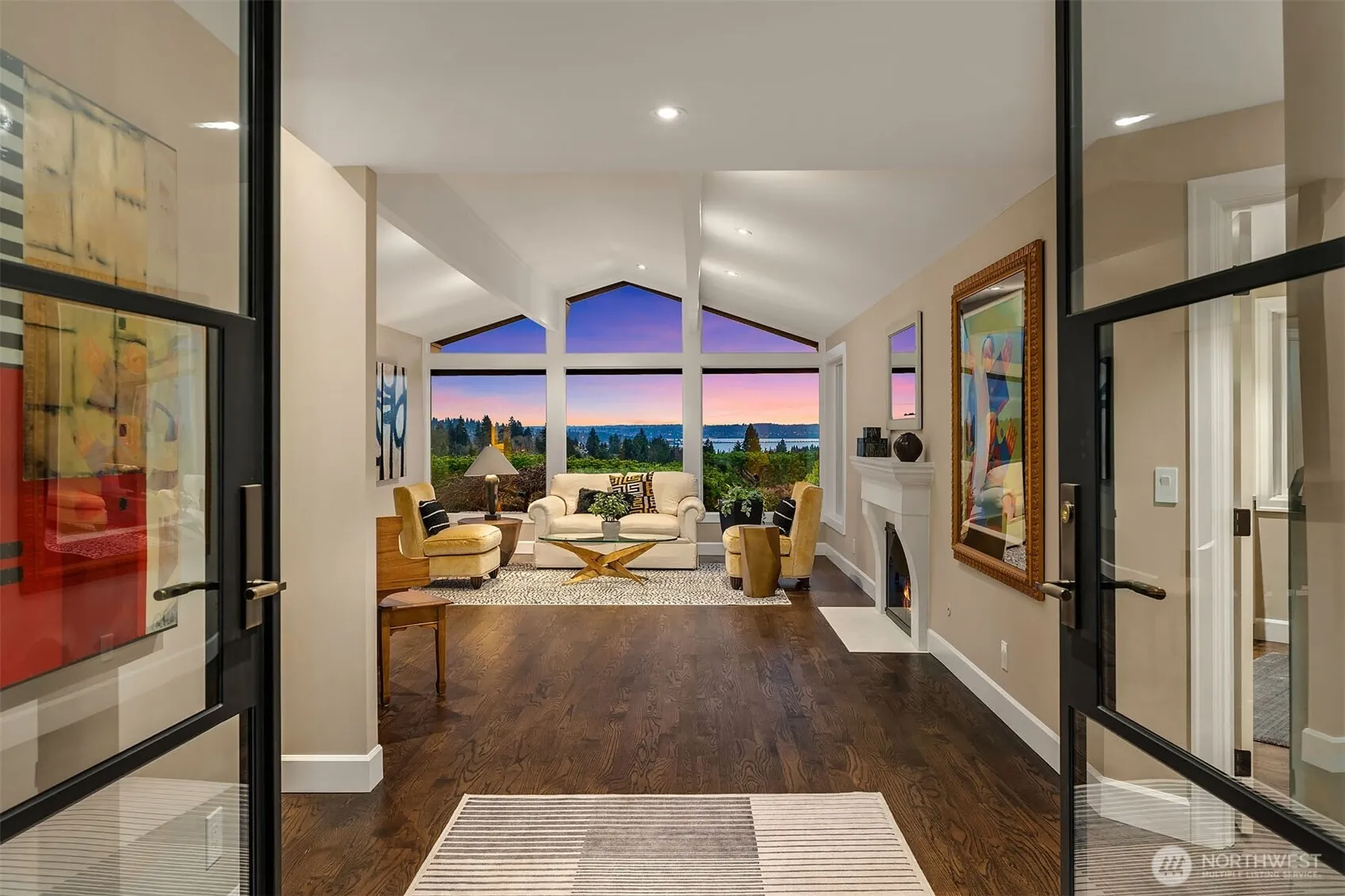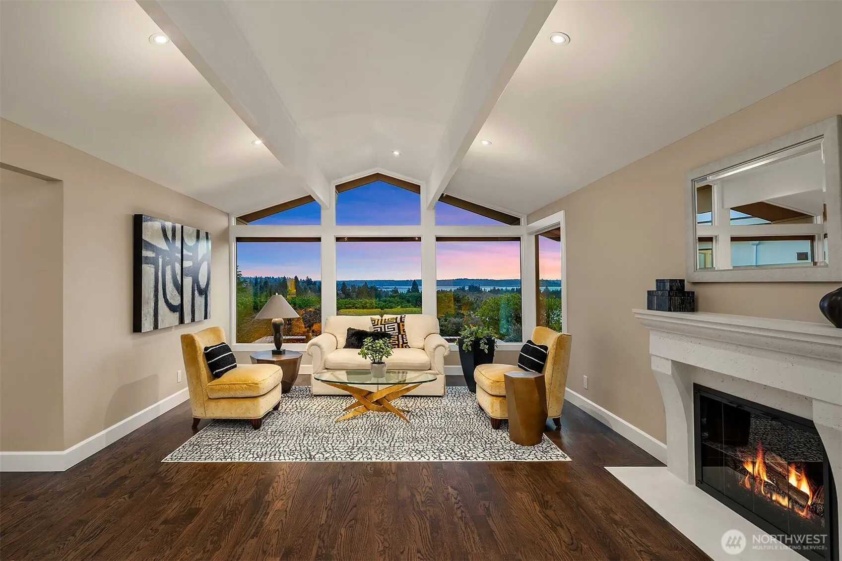 A rare find! Beautifully renovated rambler near the top of Clyde Hill! Breathtaking views of Lake WA, Seattle & Olympic mountains! Thoughtfully reimagined in 2023-2024, no expense spared, maximizing the views from almost every room. Stunning epicurean kitchen; custom cabinetry, slab quartz counters, 10′ island, new top of the line stainless appliances; 6 burner Wolf gas range with double ovens. Sub zero. Walk in pantry. New hardwood floors! Open concept with vaulted ceilings. Gorgeous primary with views and a new spa-like bath & 2 walk in closets. Beautiful gardens including an atrium and peaceful water feature. French doors and expansive picture windows seamlessly blending indoor & outdoor living. No steps! One level living at its finest!