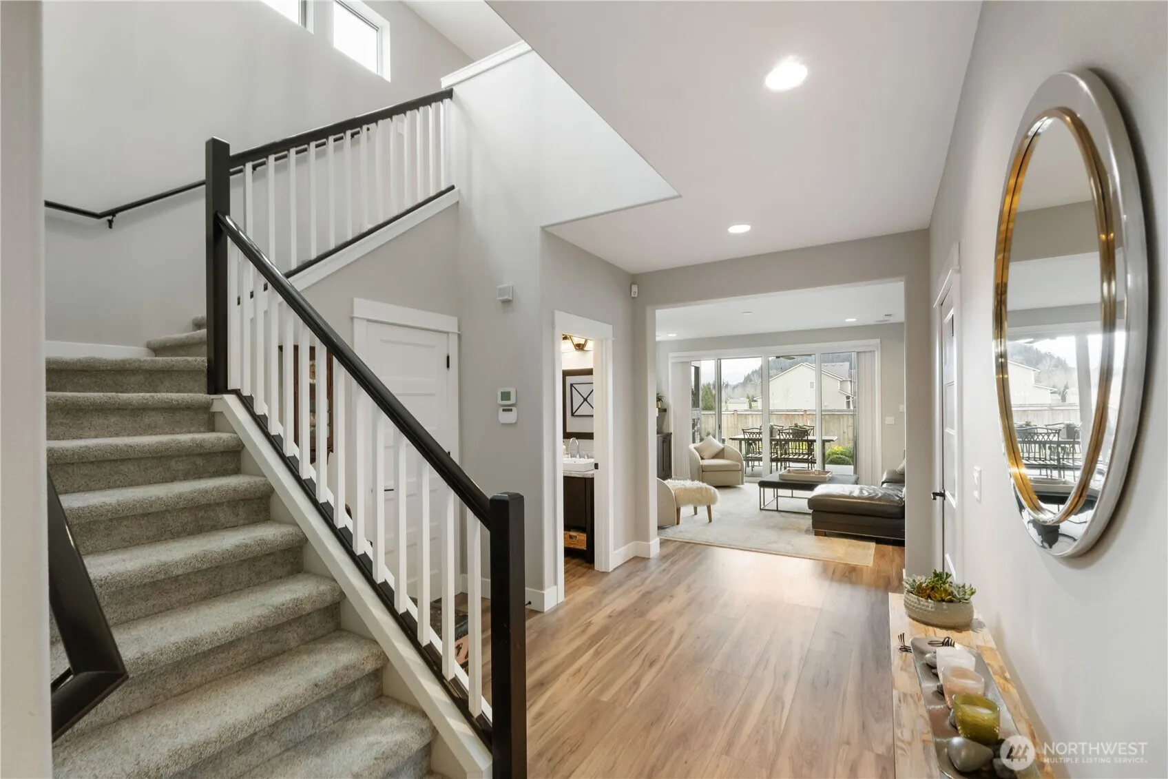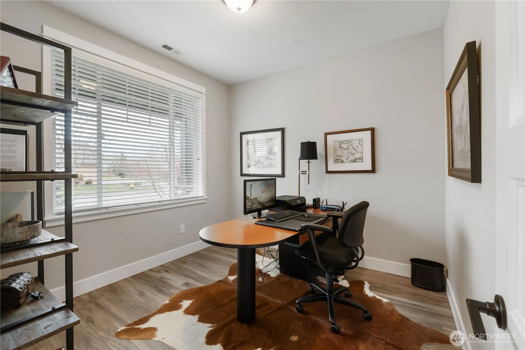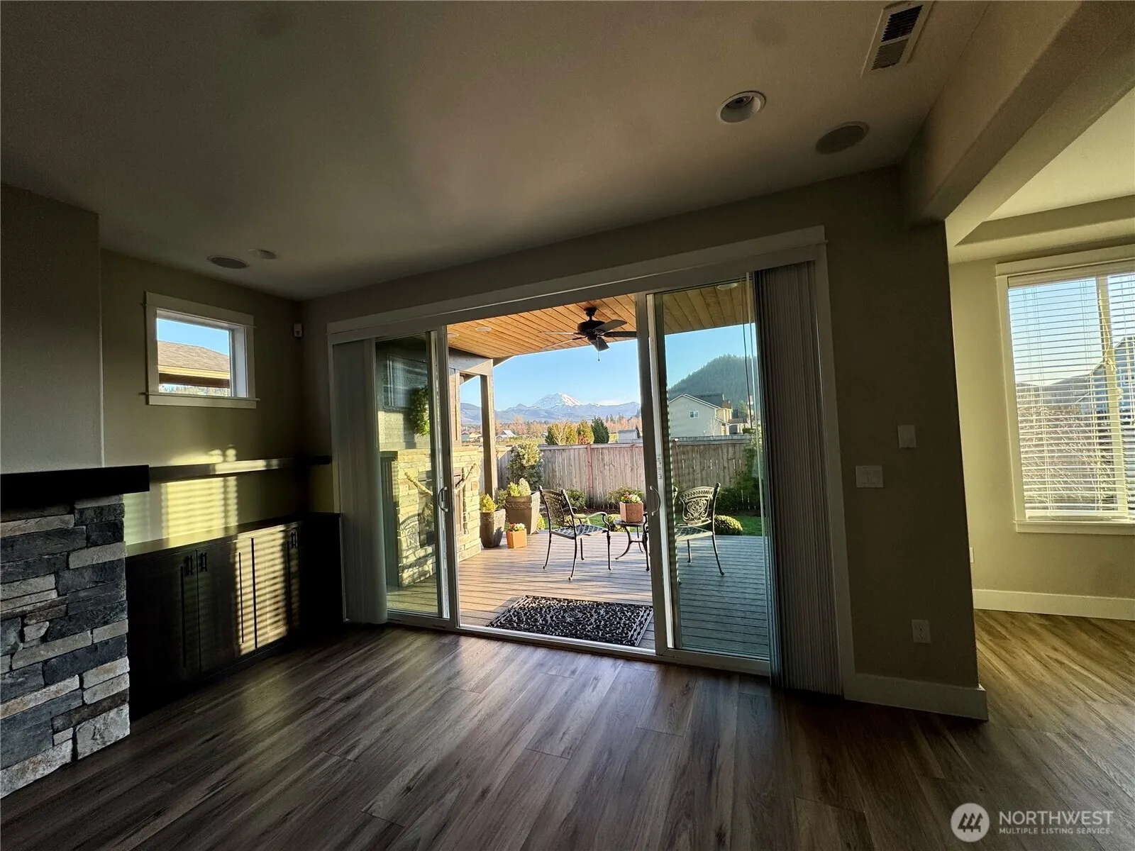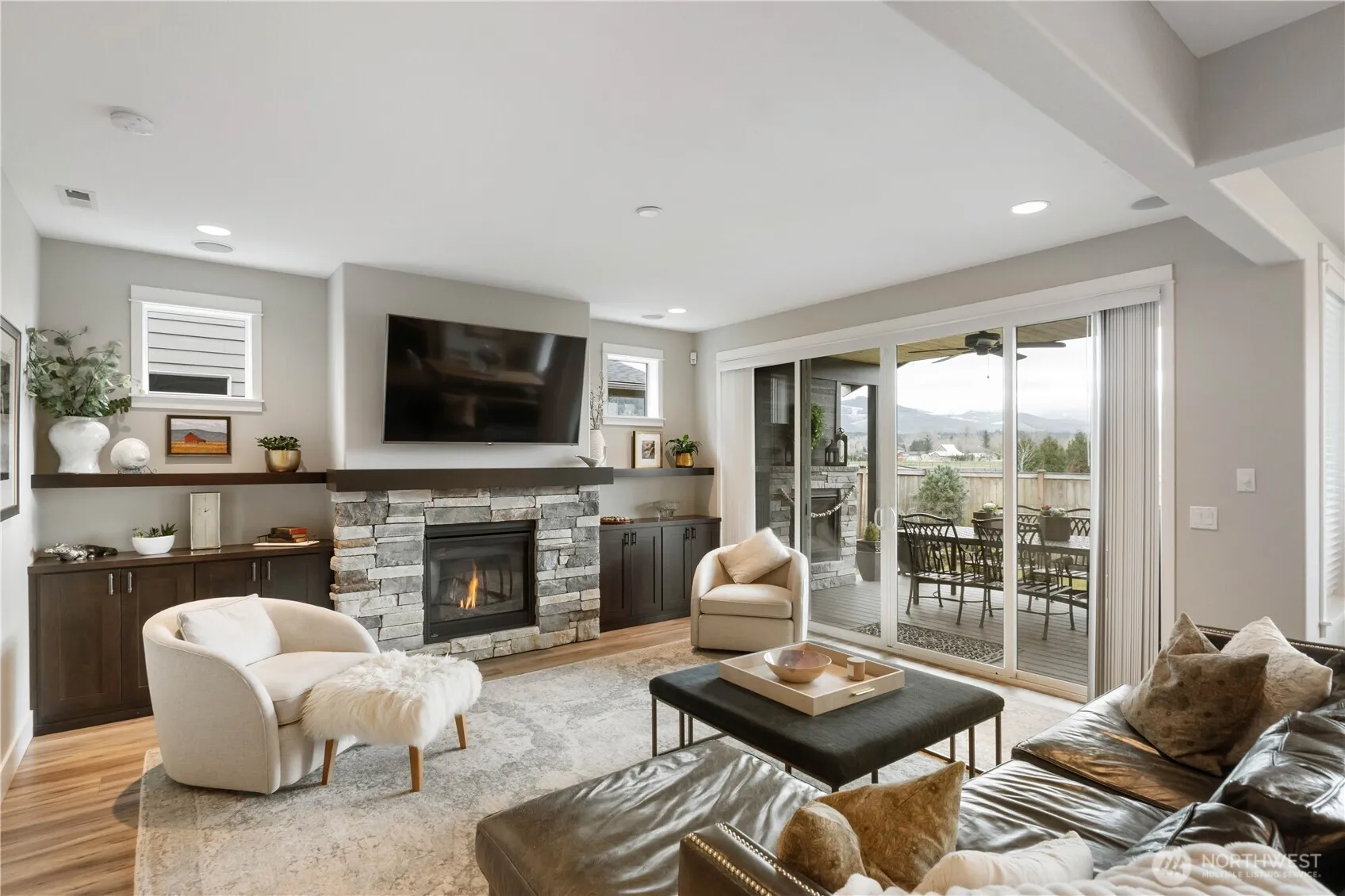 Executive living on a Prime Mt. Rainier View Greenbelt lot in Suntop Farms! 2,540 SF of Luxury includes 4 bedrooms (all w/ walk-in closets), 2.5 baths + office on main. Stunning gourmet kitchen features custom all-wood cabinets, stainless appliances, quartz counters, walk-in pantry & built-in buffet. Open concept plan w/ large dining & a beautiful fireplace in family room w/ built-ins. Elegant primary suite w/ 5 piece bath & huge walk-in closet. Generous use of tile throughout, built-in speaker system, heat pump, tank-less water heater. Outdoor living space w/ built-in stone faced gas fireplace & professional landscape with sprinkler system. Fabulous view is protected by greenbelt (drainage ponds). Stunning Home All Around!