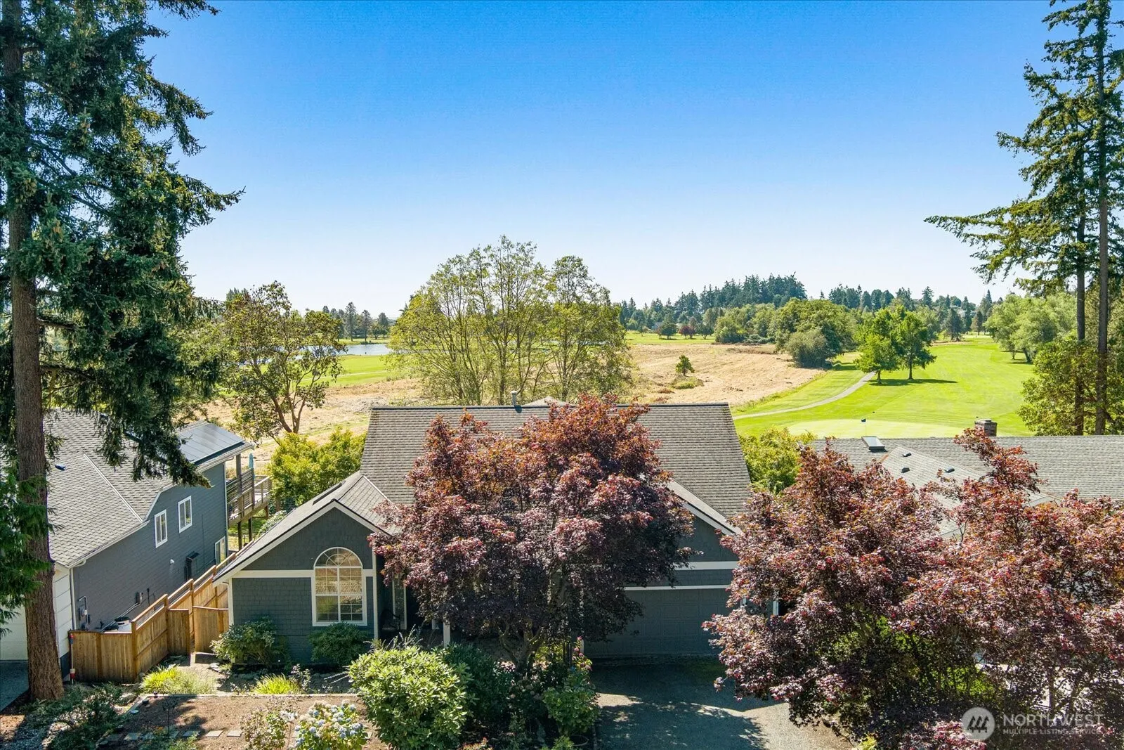 Imagine your charming home in the coveted Useless Bay Golf & Country Club, overlooking stunning territorial views and the golf course. Located on the 17th hole, enjoy watching sunsets year around on your covered patio. Now featuring a main-level bedroom and ¾ bath, a cozy propane fireplace in the living room, and a sunroom filled with natural light. Your home offers formal living as well as an open concept for entertaining and gathering all surrounded by lovely gardens. Features include hardwood floors, vaulted ceilings, quartz counters, stainless steel appliances, and wired for generator. Community amenities include a pool, tennis courts, gym, private beach access. Imagine your island life here!