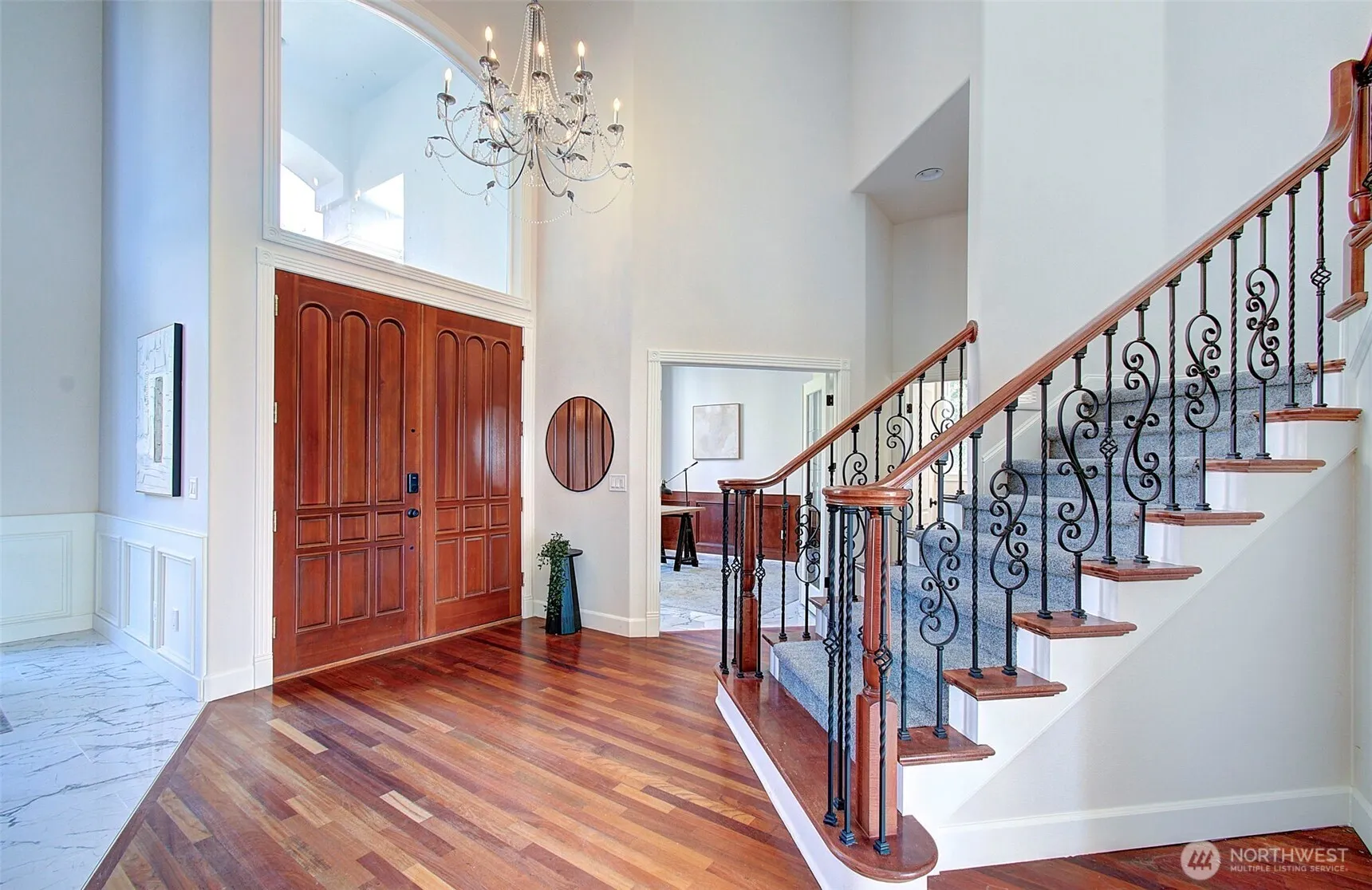 Enjoy a spectacular view from the back deck. Step into a beautiful formal living room featuring high ceilings and elegant marble floors. Spacious office adorned with rich wainscoting, perfect for work or study. The family room has a cozy fireplace and floor-to-ceiling windows, allowing you to enjoy the stunning views. The primary suite is conveniently located on the main floor and has a fireplace. The beautiful kitchen features a large island for meal preparation and entertaining. Upstairs, you will find an ensuite bathroom with a full bath and two additional bedrooms with an attached bathroom. For added enjoyment, there is a bonus room ideal for crafts, movies, or recreational activities, which includes a wet bar and a full bathroom.