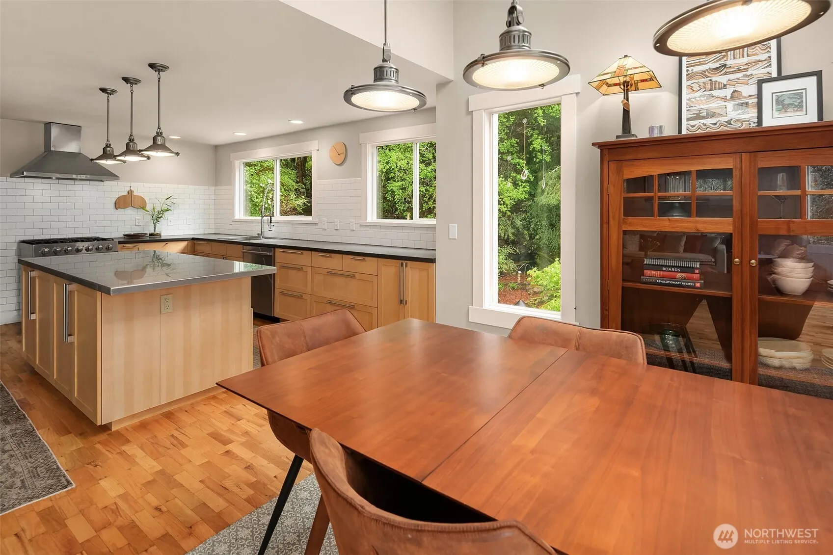 Nestled on 4.98 acres of open and wooded land, this NW contemporary is the perfect blend of nature and modern design. The living/dining areas are bathed in natural light, thanks to large windows that seamlessly connect the interior to the deck w/ breathtaking sunset views. Snuggle in w/ the Italian Piazzetta pellet stove! Beautiful, handcrafted koa stair treads with in-laid madrona rounds connect main to lower floor family room, bedroom w/ a walk-in closet, built-ins, 3/4 bath, 2 in-wall fireplaces & access onto brick patio. Upstairs find den/office alongside 2 bedrooms, & full bath. Separate shower rooms upstairs & downstairs. A detached artist studio/workshop provides the perfect space to embrace creativity. Open space insures privacy!