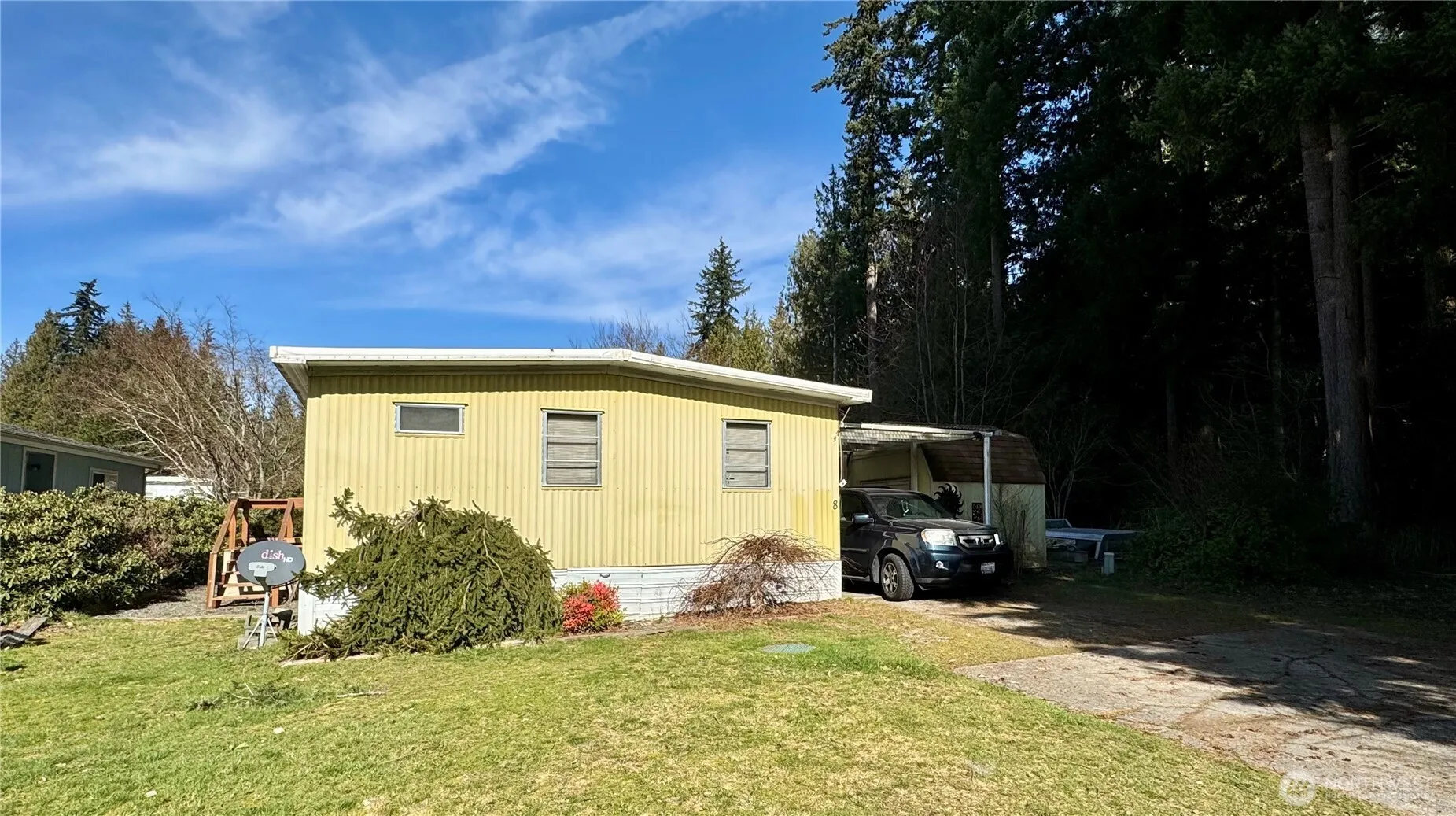 Manufactured home in the desirable 55+ community of Seven Lakes Mobile Home Park. Conveniently located minutes from Smokey Point shopping and the lakes for recreation. 2 bedroom/2 bath with generous sized living room, kitchen with an abundance of cabinetry and eating space plus an additional formal dining room with built in hutch. The home sits on a quiet lot with a greenbelt side yard. Attached carport and handy storage shed. The community features a clubhouse that can be rented for events. Pets are welcome by approval of the park.