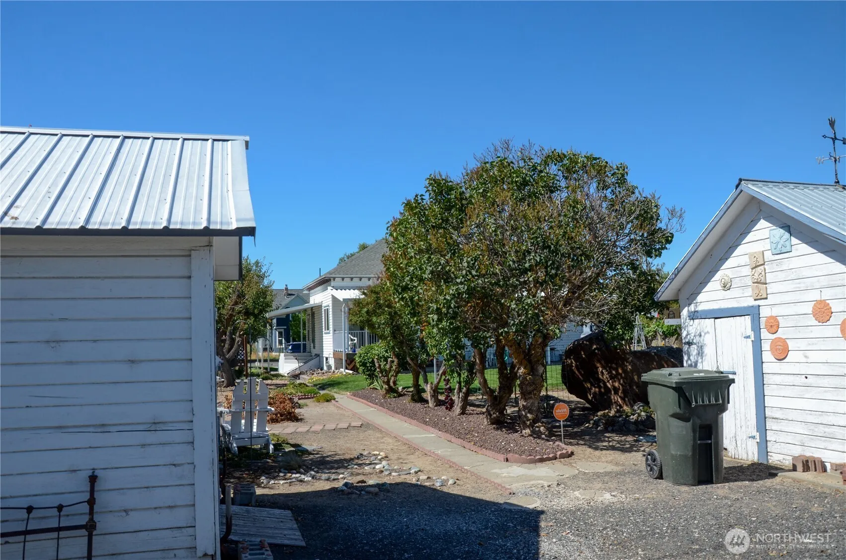 This is a beautiful 3-bedroom and 2-bathroom home located on a large lot with custom landscaping that includes 15 rock pillars. The home features a covered deck and patio off the back door, and it is situated on a corner lot. There is also some vinyl fencing, two small storage sheds, and one large shed, as well as a double car garage. The yard boasts fruit tThree plus two bath home on an oversized lot with custom landscaping including 15 rock pillars. Covered deck and patio off the back door. Corner lot. Some vinyl fencing. Two small storage sheds and one large one. Double car garage. Fruit trees and a grape vine. Home as been very well maintained with many updates. Extra shower downstairs with a shop area and lots of storage. Vinyl siding.