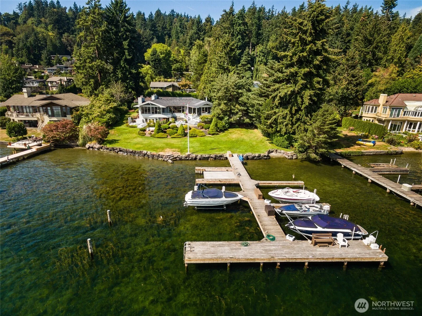 Introducing an exceptional waterfront residence with breathtaking views of Mount Rainier, perfectly framed by meticulously landscaped grounds. This remarkable home spans 4,450 square feet, offering four generously-sized bedrooms and four and a half bathrooms. The expansive open-concept kitchen seamlessly flows into a welcoming family room, ideal for both relaxation and entertaining. Boasting 100 feet of pristine private waterfront, this property is a true sanctuary. The custom dock features a mooring slip designed for a 40-foot deep keel sailboat, along with an electric boat lift capable of accommodating an 8,000-pound motorboat and a 5,300-pound floatplane lift. Experience unparalleled coastal living in this one-of-a-kind home.