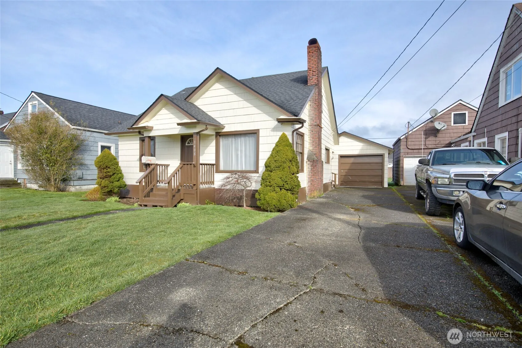 This 3 bedroom quaint bungalow is waiting for you to turn it into a gem! They have started with a newer composition roof. The bathroom has been redone with a convenient walk in shower. Situated in the hall between two of the bedrooms. A third bedroom with bonus area is on the upper floor. Older large kitchen has a vintage nook to eat your meals and look out at the big backyard. With parquet flooring adding interest to this room. Separate laundry off kitchen. Single car attached garage with storage area. Back alley. There is so much potential at a very competitive price.
