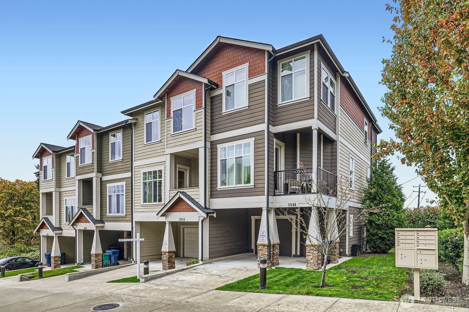 Sophisticated northwest contemporary townhome with Seattle skyline views! Custom designed largest of the plans in this community with endless elbow room to spread out, entertain & display your culinary skills in chef sized kitchen. Exceptional tailored features in great room, tall ceilings, mantled gas fireplace, relaxing intimate covered deck. Huge master suite, sitting room, plush bath/spacious closet. Downstairs has den/study/private enclosed patio. Tandem garage with a parking spot in front driveway. Conveniently located next to Light rail station, I-5 & just 12 minutes to downtown Seattle. Come take a look today!