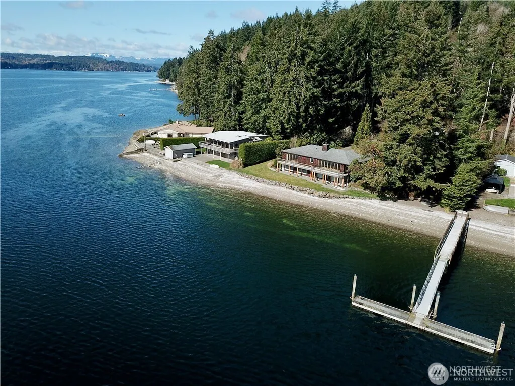 The best places don’t announce themselves. They exist in sync with their surroundings, waiting to be discovered. This Hood Canal retreat is one of them. Tucked beyond the trees, it watches tides roll in, eagles soar, and whales surface. Remodeled in 2005, it was designed for living, with walls of glass framing water views.The deck extends near the shoreline, while the private beach is perfect for kayaks and paddleboards. The deep-moorage dock awaits. The gourmet kitchen is built for gathering—oysters shucked at the counter, crab fresh from the canal. The primary suite is a retreat, a place to let the world wait. A home theater and hot tub invite slow evenings. The guest house welcomes visitors who come for a weekend and never want to leave.