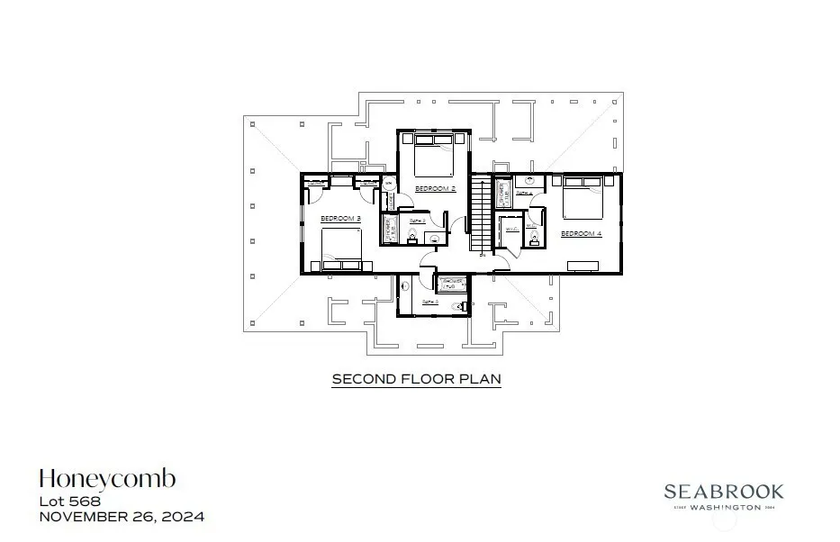 The Honeycomb is a thoughtfully designed home set on a coveted Garden Lot—one of Seabrook’s largest—offering endless possibilities for outdoor living. With space for a private pool, greenhouse, or custom garden, this property invites homeowners to create their own retreat. Backing onto public land, it ensures privacy and a serene natural backdrop. Inside, the open-concept layout features a well-appointed kitchen, spacious great room, and dedicated dining area. A main-level bedroom with an ensuite bath adds flexibility, while three additional ensuite bedrooms provide comfort and privacy. Bordering Meadowview Park and steps from mountain biking trails, the Honeycomb blends tranquility and adventure.