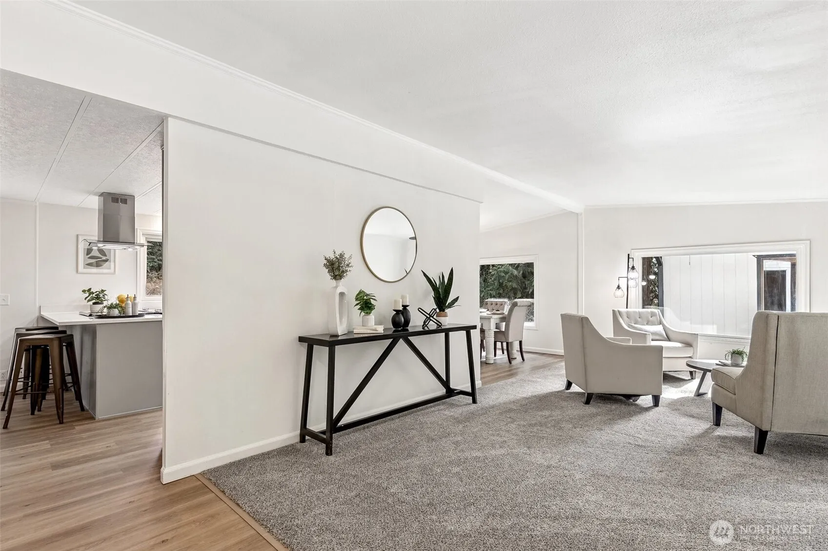 Nestled Amongst the Evergreens in Carnation sitting on over 1 Acre of Private Land on this Corner Lot with Circular Driveway is a Rejuvenated 3 Bed – 1.75 Bath Home with 2 Car Detached Garage/Shop. This Sprawling Floor Plan Covers 1,782 Sq ft of Living Space that has been Update and Upgraded for Today’s Modern Living. New LVP Flooring, Carpet, Kitchen Cabinets, Quartz Counter Tops, Stainless Appliances, and Under Mount Sink. Big and Bright Double Pane Vinyl Windows Allow for Tons of Sunlight. New Bathroom Vanities with Quartz Counter Tops and New Hardware. Private Primary Bathroom with Tile Floors and 3/4 Walk In Tiled Shower. New 30 Year Composition Roof and Updated Insulation, this home has been fully permitted and inspected by L&I.