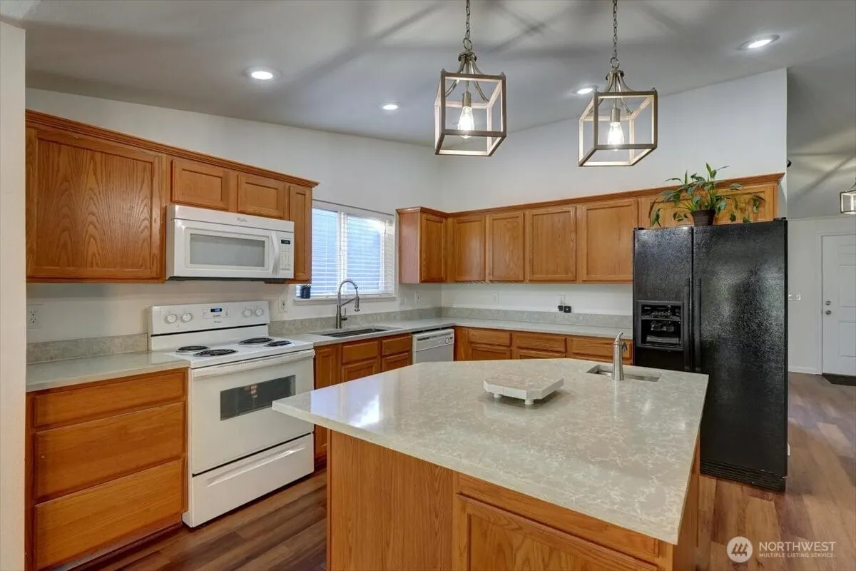 You will fall in love with this spacious Great Room concept main floor, featuring vaulted ceilings, heated tile flooring, and a rock-faced corner fireplace. The home boasts 3 bedrooms, 2 full baths, a private den, and a true chef’s kitchen. French doors open to a large deck, a swim spa for both fun and exercise, & fully fenced, terraced backyard for privacy. Wired for security cameras; labeled cabling; with new carpets and newly updated baths. The garage provides 600 square feet of storage with additional shop space built-in on the side. The wide side gate allows for free parking of boats, motorhomes, or camping trailers. Located 1 block from Black Diamond Elementary, close to shopping, four great restaurants, and parks and trails close by.
