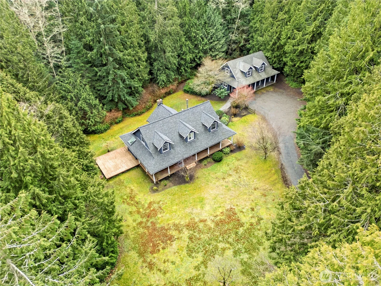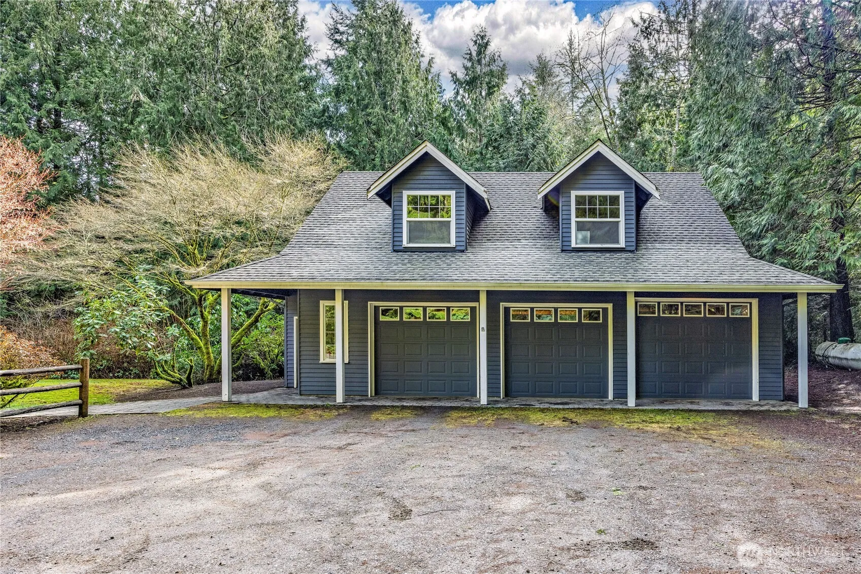 Tucked into 2.5 serene acres, this Craftsman retreat feels like home the moment you step onto the wrap-around porch. Inside, rich fir floors, bespoke millwork + cherry cabinetry set the tone for timeless beauty. The great room stuns w/ soaring ceilings, curved windows & a cozy wood stoves . The main-level primary suite is a true retreat offering a private deck + brand new spa-like ensuite & oversized walk-in closet. Upstairs, two dormered bedrooms, a spacious loft/ bonus room offer versatility. A detached 3-car garage with an unfinished loft invites endless possibilities. Just 10 minutes to the Kingston/Seattle fast ferry, downtown Kingston shops & restaurants + easy to Whitehorse Golf & Indianola. Privacy & convenience in perfect harmony.