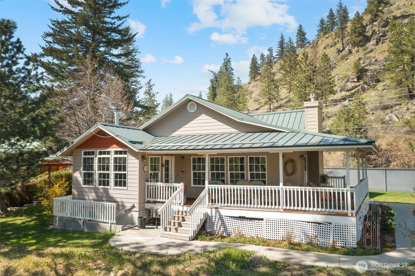 Stunning Entiat Riverfront Home with large garage, awesome views & 144′ of riverfront. This home was torn down to one wall & totally rebuilt in 2000. The beautifully designed kitchen boasts of plentiful countertop space, tons of cabinets & drawers, a pantry, large eating bar, & skylight. Kitchen & dining room (with wood stove) merge into one large space that over-look the back yard & river. Spacious primary suite & laundry on the main floor, make this a home you can live in for years! Outside offers a wrap-around covered deck, in-ground sprinklers, fully fenced yard, Hardie-board siding, & metal roof. This is the complete package.