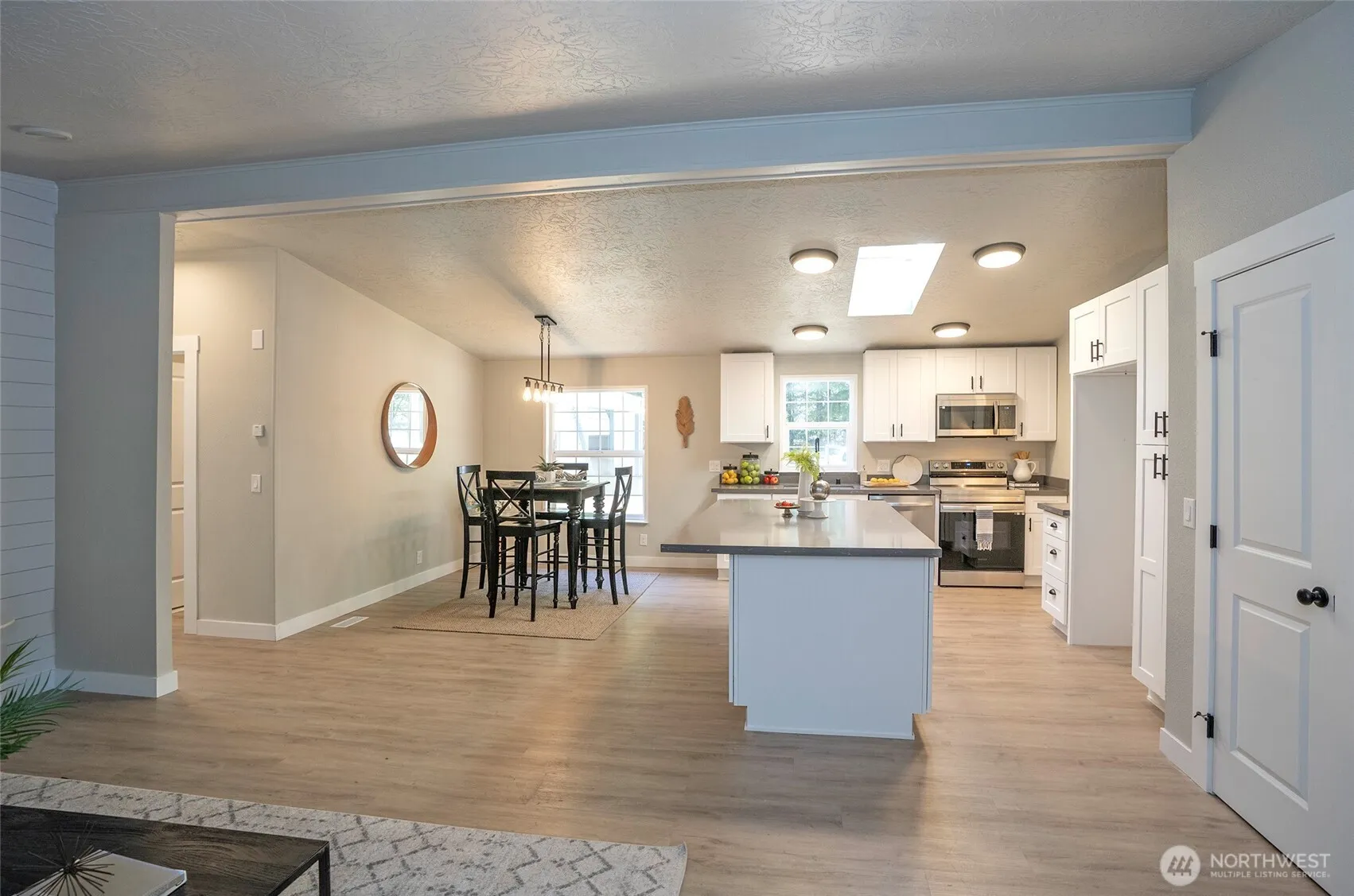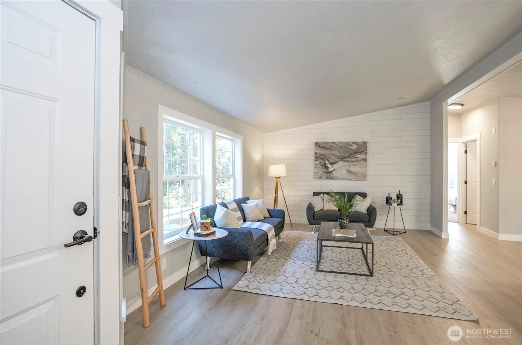 Come see ths Fully Updated, 1,296 sq ft, 3 bed, 2 bath home on your own 1.24 acres. The open kitchen features all new cabinets, Quartz counters & back-splash, Pantry, new Stainless Steel Appliance package including range, dishwasher & microwave oven. Vaulted ceilings with skylights and engineered plank floors throughout the living area. New doors, millwork, paint, lighting & plumbing fixtures. Primary bedroom includes a bathroom with double sinks & walk in shower. Vinyl windows. 864 sq ft detached garage with shop area with double 10′ doors. Parking for 4 cars. Sub Panel. Boat or RV parking. No HOA dues. Come see!